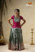 Embroidery Pattu Pavadai Designs for Girls - Green Satin Diya