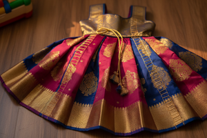 The Pattu Pavadai has many variety like Silk blend pavadai sattai made from the material of Banaras, Brocade, Tissue, Chanderi etc. from North India and Art silk and semi silk pavadai sattai are made South Indian. Pattu has many segment for girls like pavadai sattai, pattu half saree, pattu frock etc.
