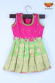 Girl Yellow Banarasi Patola Baby Frock. A frock hemmed to new born to experience the celebration of any special occasion your planning for you little one. The perfect addition to your baby girl’s wardrobe – these cute frocks are ideal for year-round wear and work perfectly for special occasions.