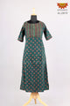 Girls Green Hand Block Lotus Printed Kurti