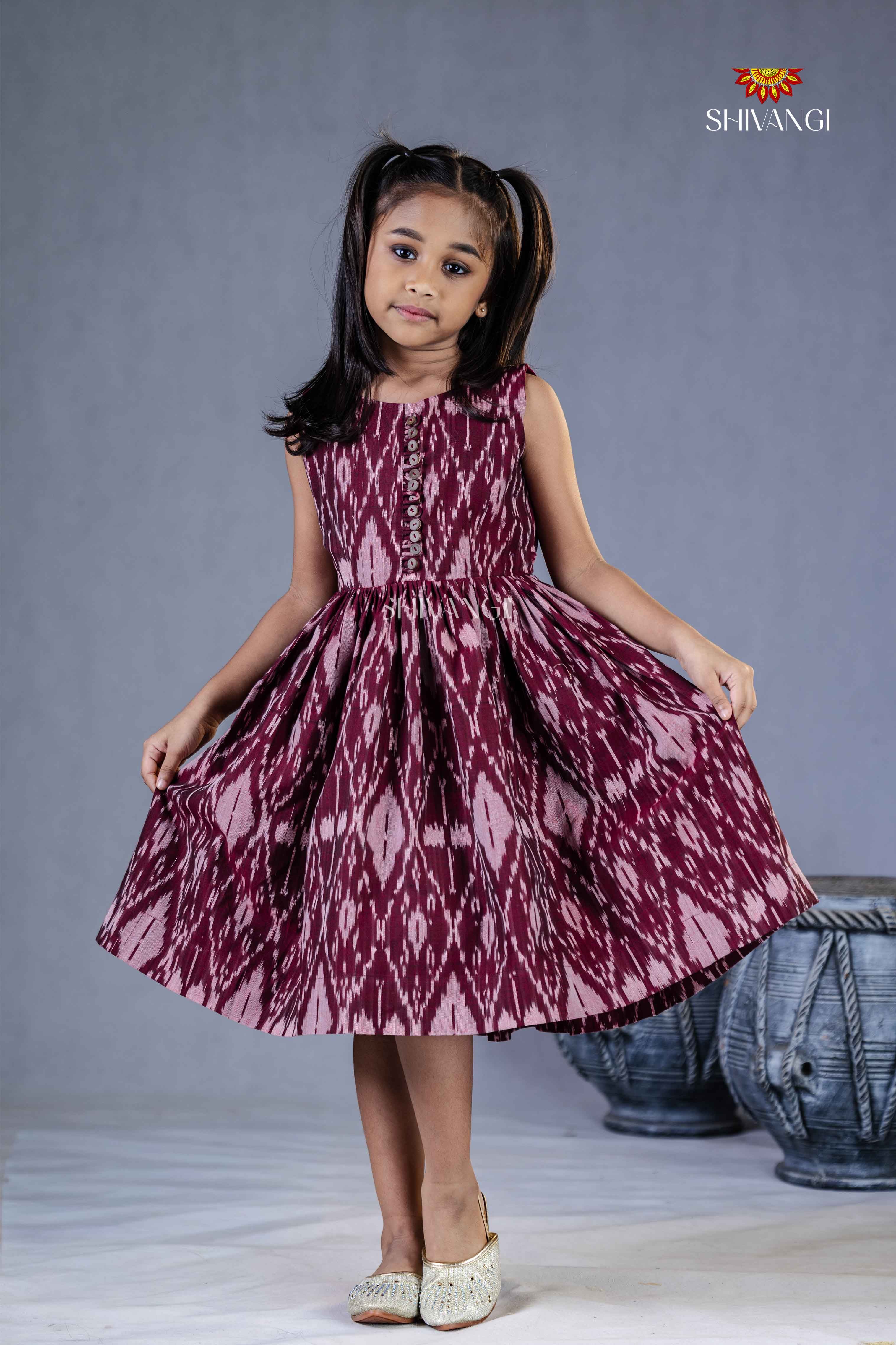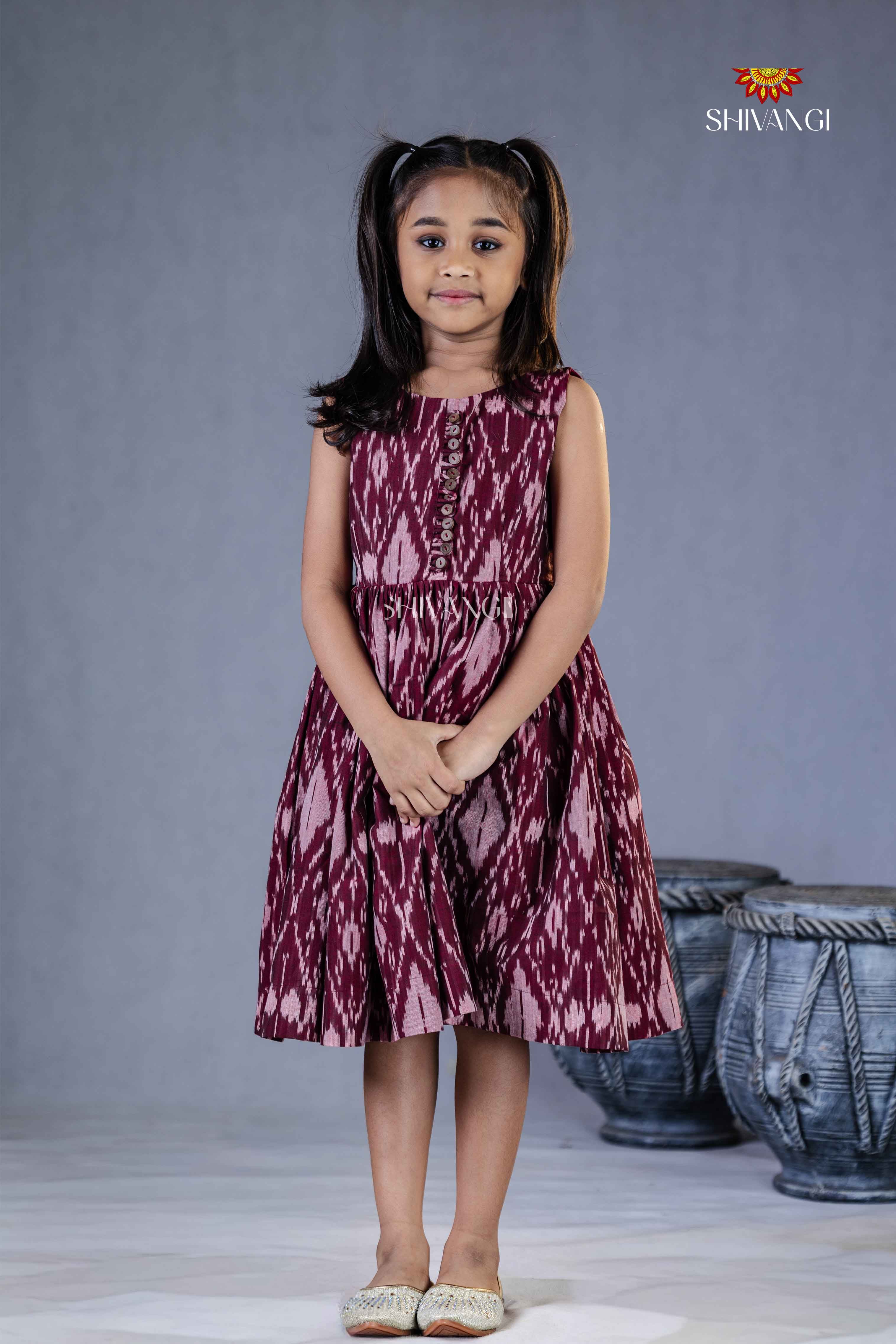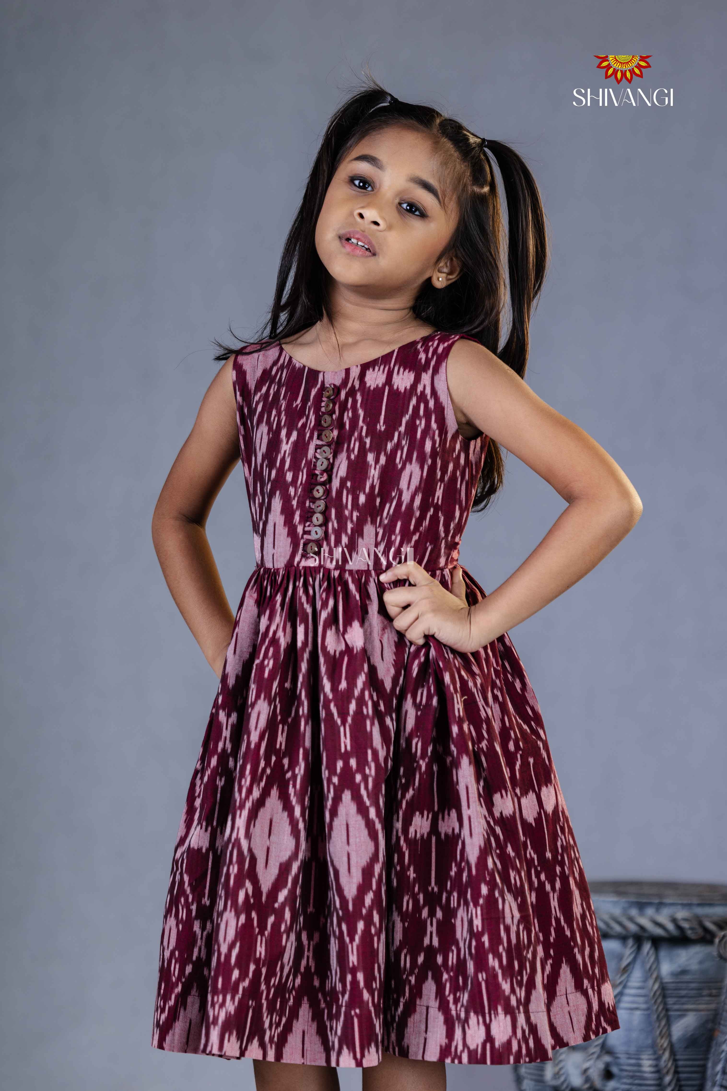 Magenta Ikkat Frock For Kids