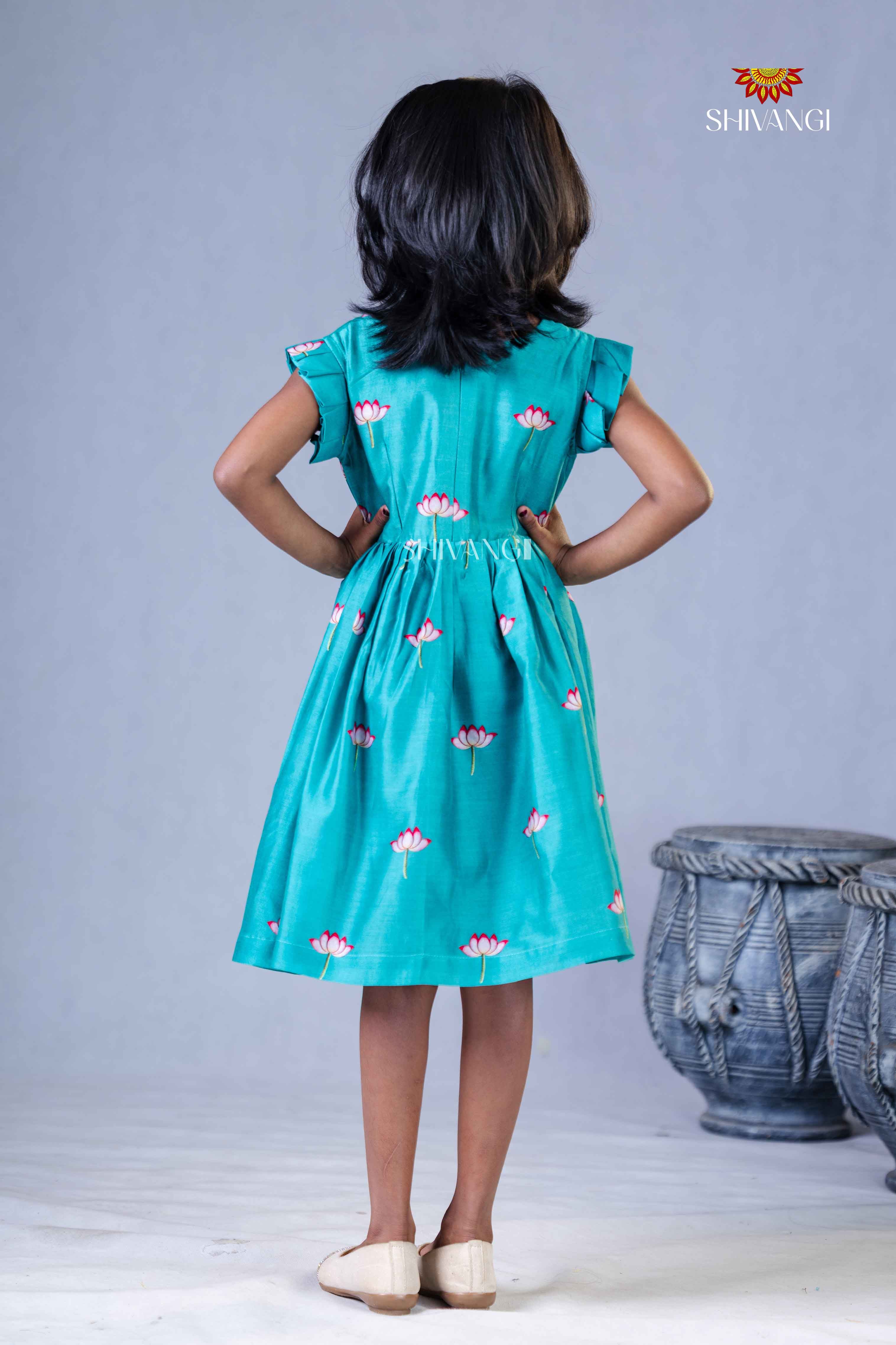 Sky Blue Brocade Wave Traditional Pattu Pavadai Set
