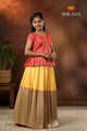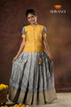 Festive Collection - Brown Flower Basket Pattu Pavadai For Girls