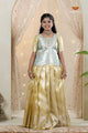Green Tissue Coral Traditional Pattu Pavadai Set for Girls
