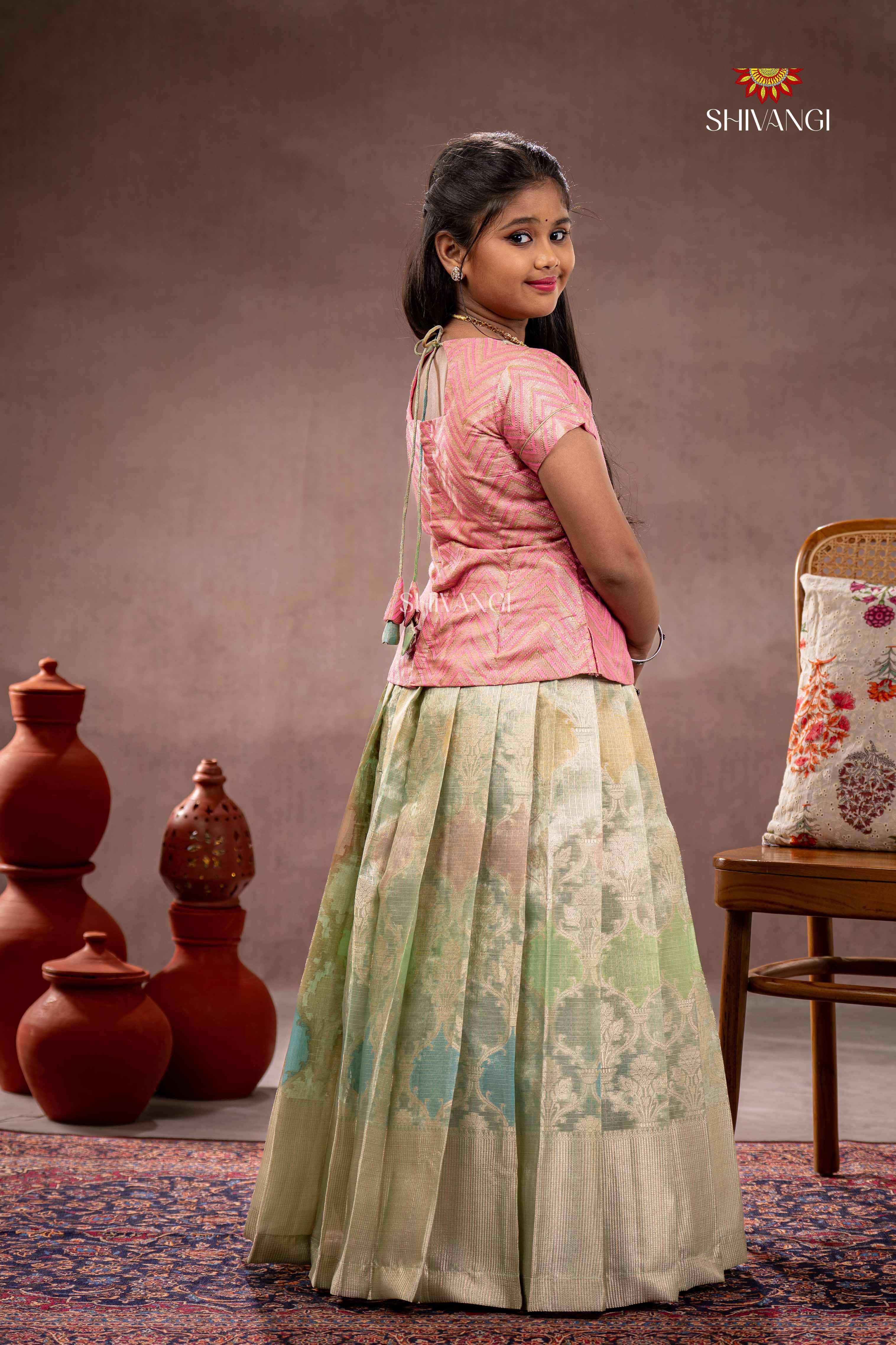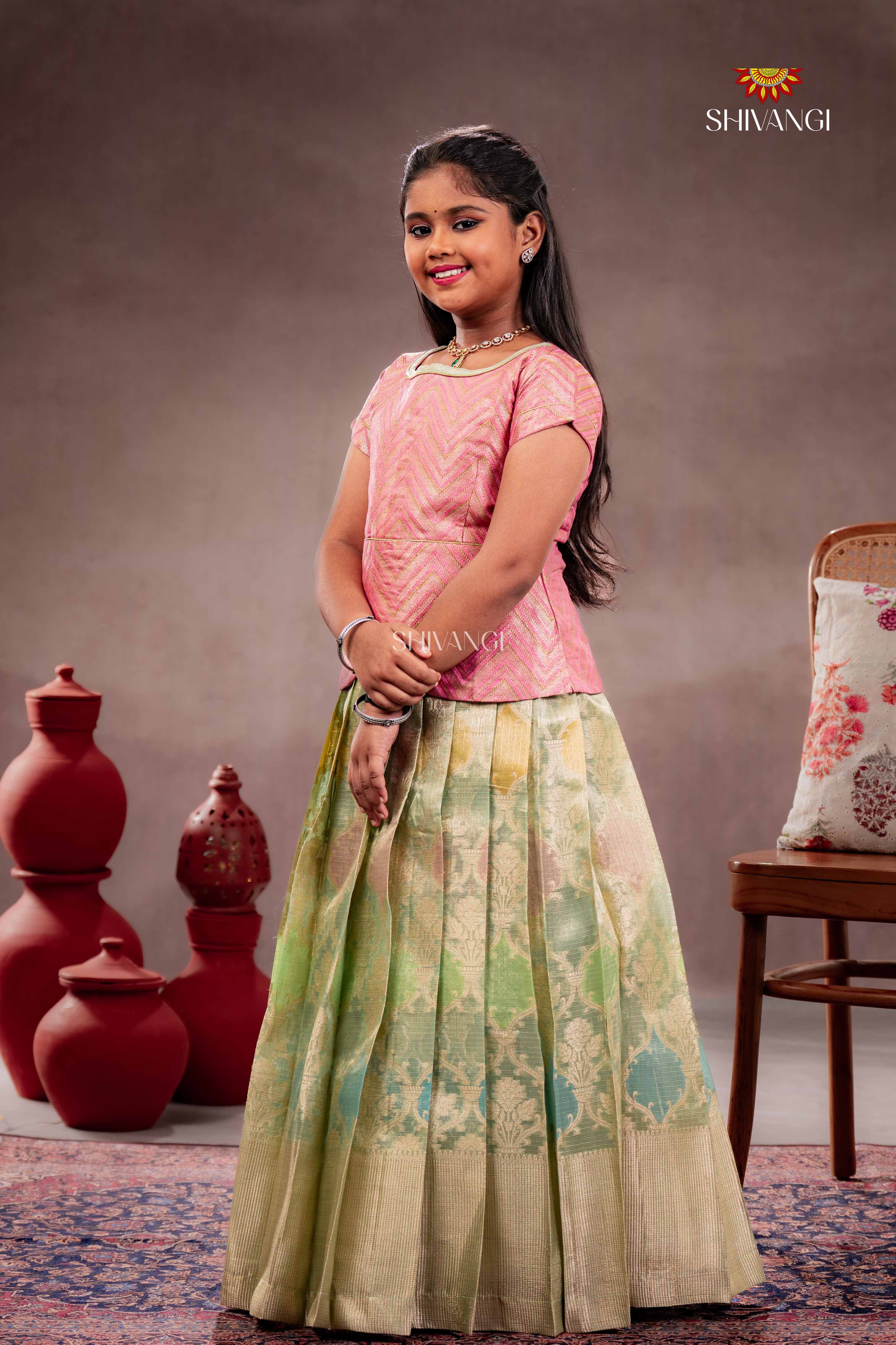 Green Yellow Diamond Traditional Pattu Pavadai Set