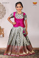 Grey Satin Twin Leaf Pattu Pavadai For Girls - Festive Wear!!!