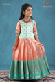 Sky Blue Silver Pine Pattu Pavadai For Girls - Festive Wear!!!