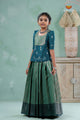 Traditional Green Silver Garden Pattu Pavadai Set for Girls