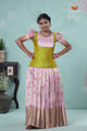 Traditional White Printed Floral Sparrow Pavadai Sattai for Girls