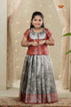 Gray Wild Creeper Alpha Traditional Pattu Pavadai Set for Girls