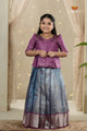 Parrot Green Golden Elephant Traditional Pattu Pavadai Set for Girls