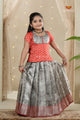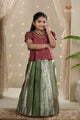 Parrot Green Tissue Glitter Traditional Pattu Pavadai Set for Girls