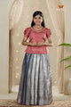 Peach Golden Elephant Traditional Pattu Pavadai Set for Girls