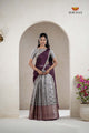 Peach Metallic Retro Traditional Pattu Pavadai Set for Girls