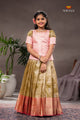 Ramar Green Royal Jasmine Traditional Pattu Pavadai Set features a Ramar Green top with a round neck and elbow sleeves.