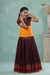 Summer Collection - Brown Cotton Kolam Pavadai Set For Girls
