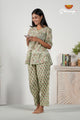 Blue Floral Print Cotton Top and Bottom Night Wear Set