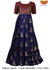 A jovial jacquard top full of peacock feather designs with an enticing elbow length sleeve design. A sophisticated tafetta silk skirt with golden floral jimikki motif. There is more to Indian ethnic long dress than it meets the eye.