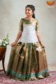Girls Red Golden Croton Pattu Pavadai | Langa