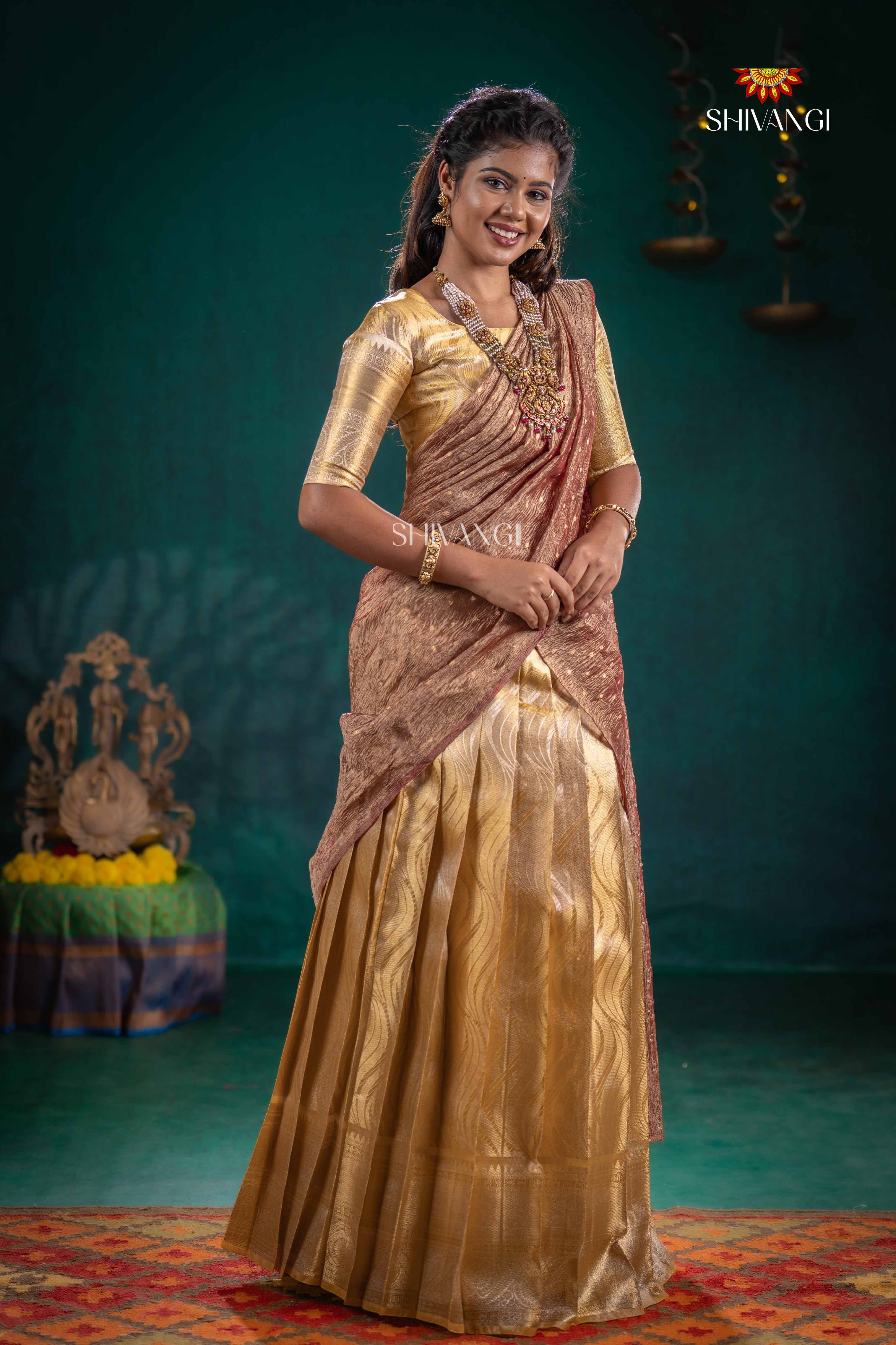 Gold Golden Flames Half Saree | Lehenga For Girls