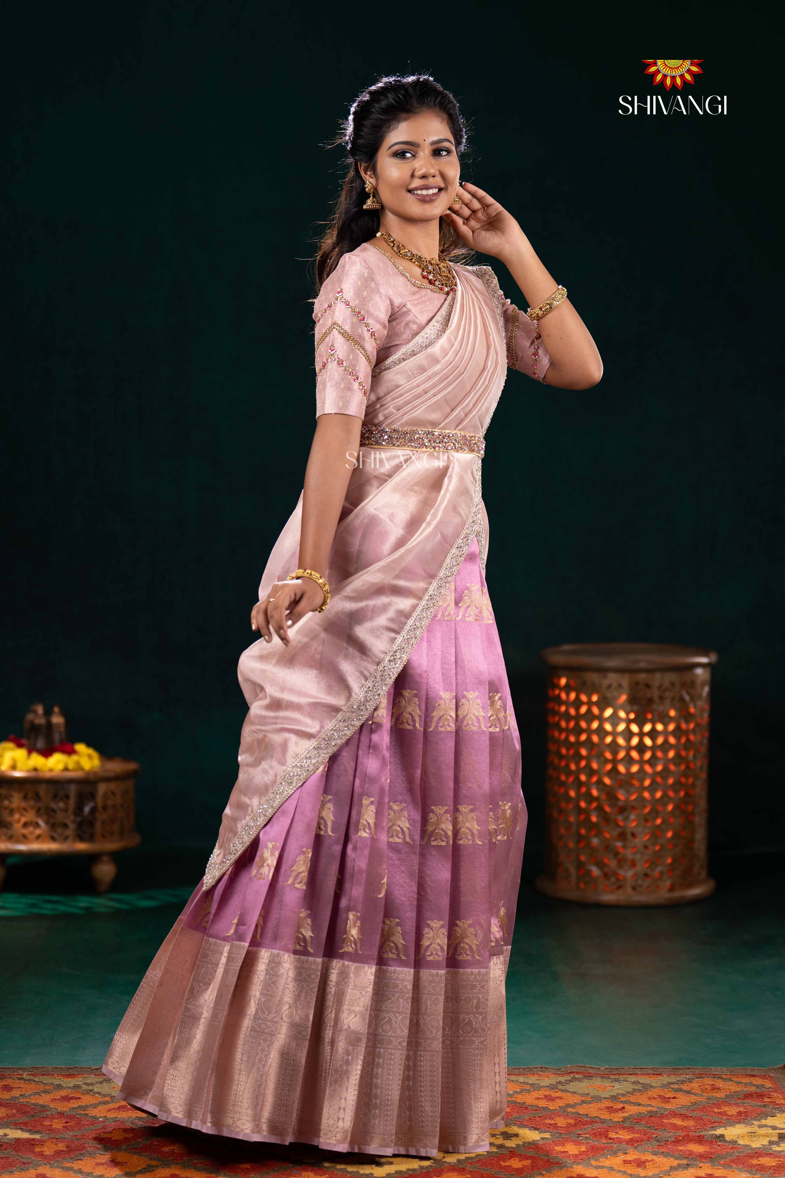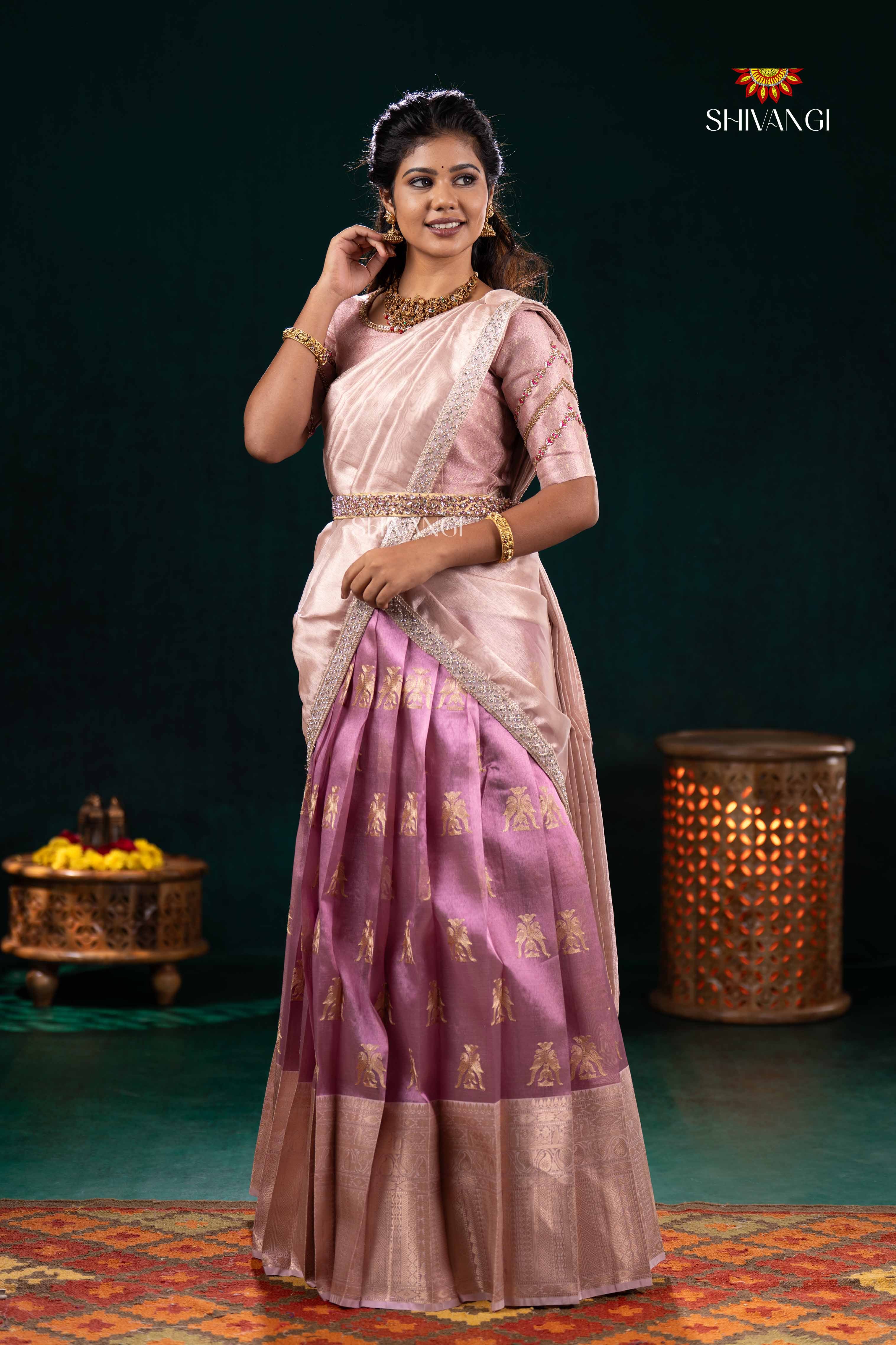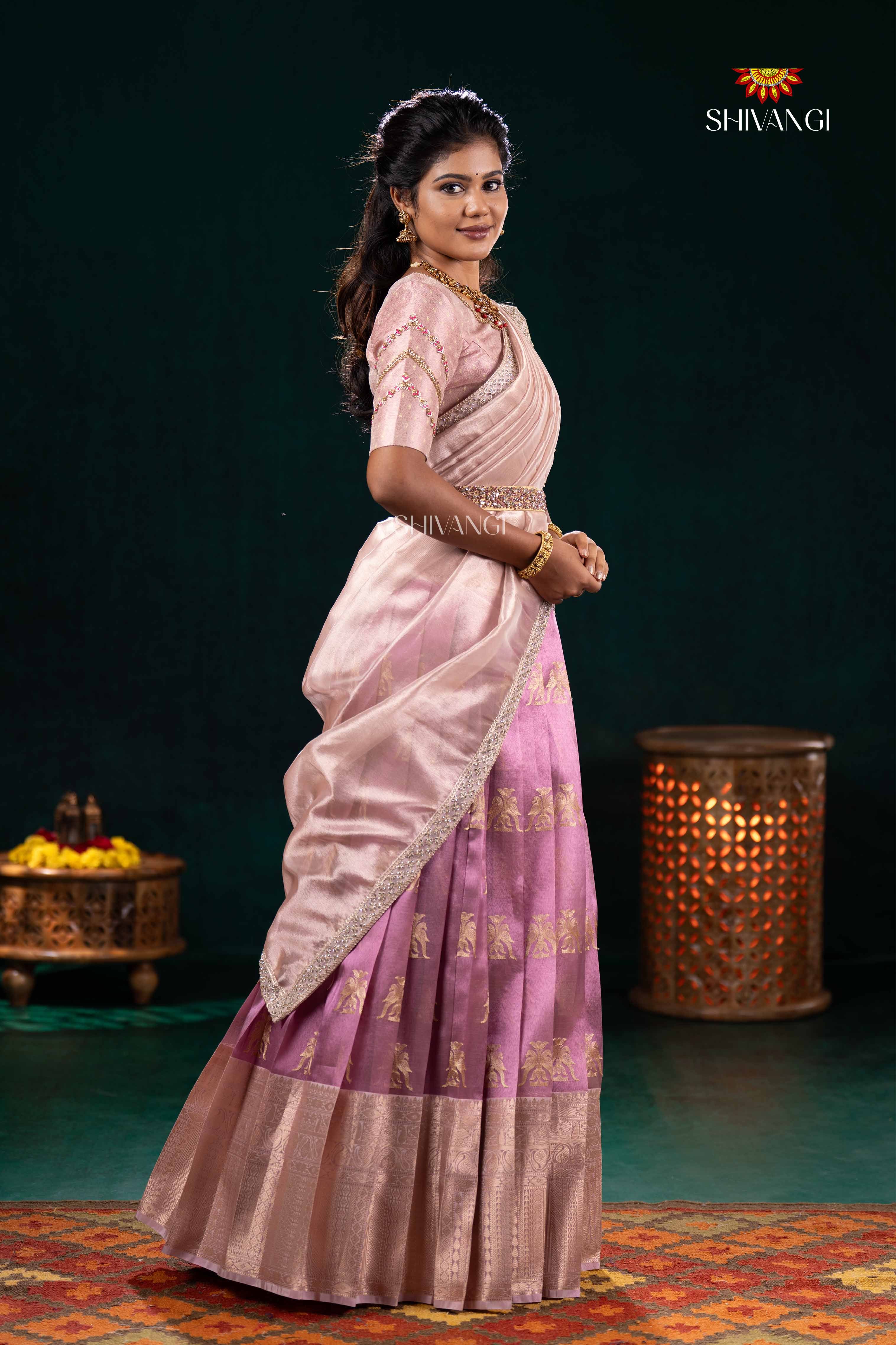 Pink Twin Parrot Half Saree | Lehenga For Girls
