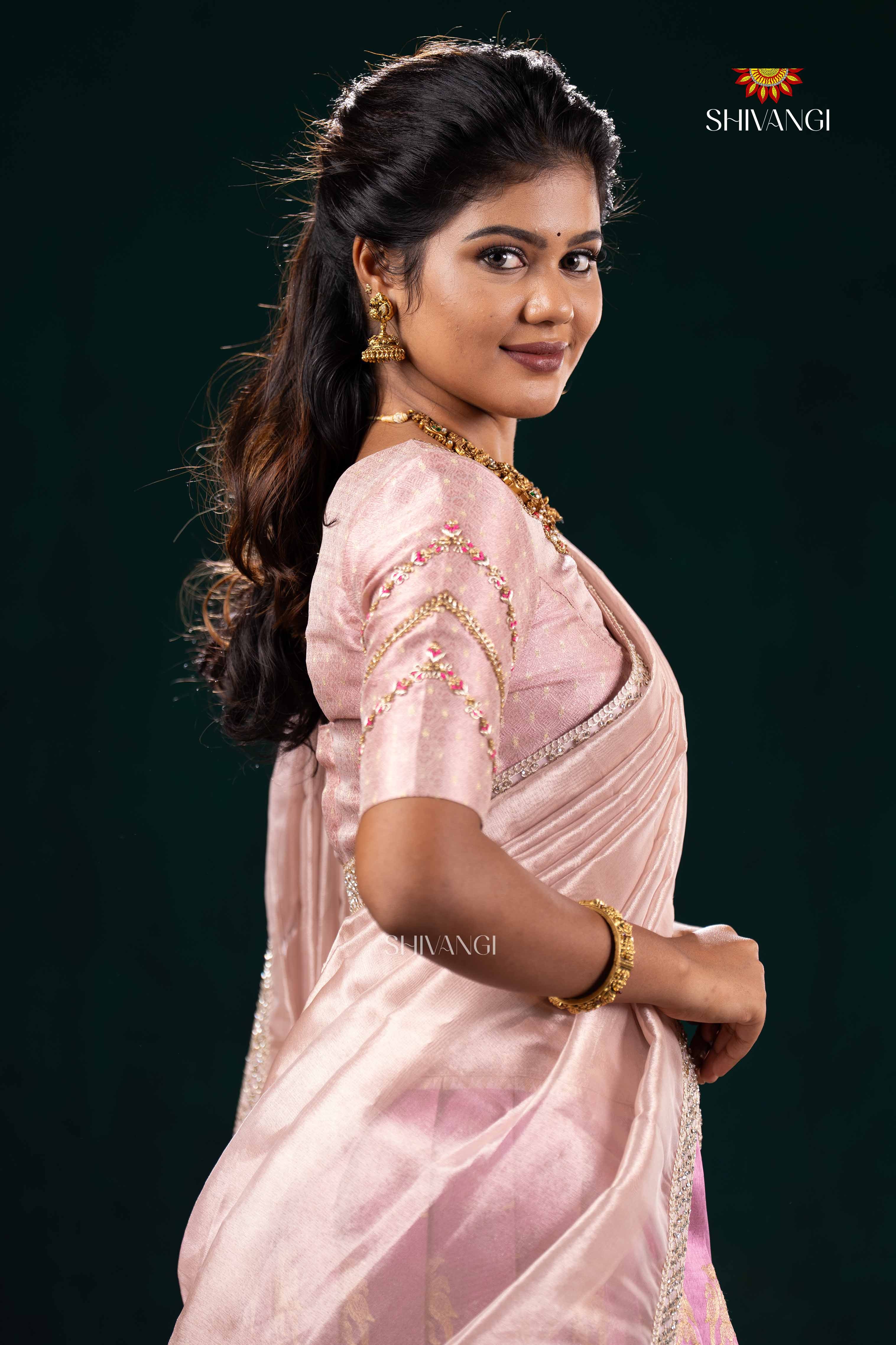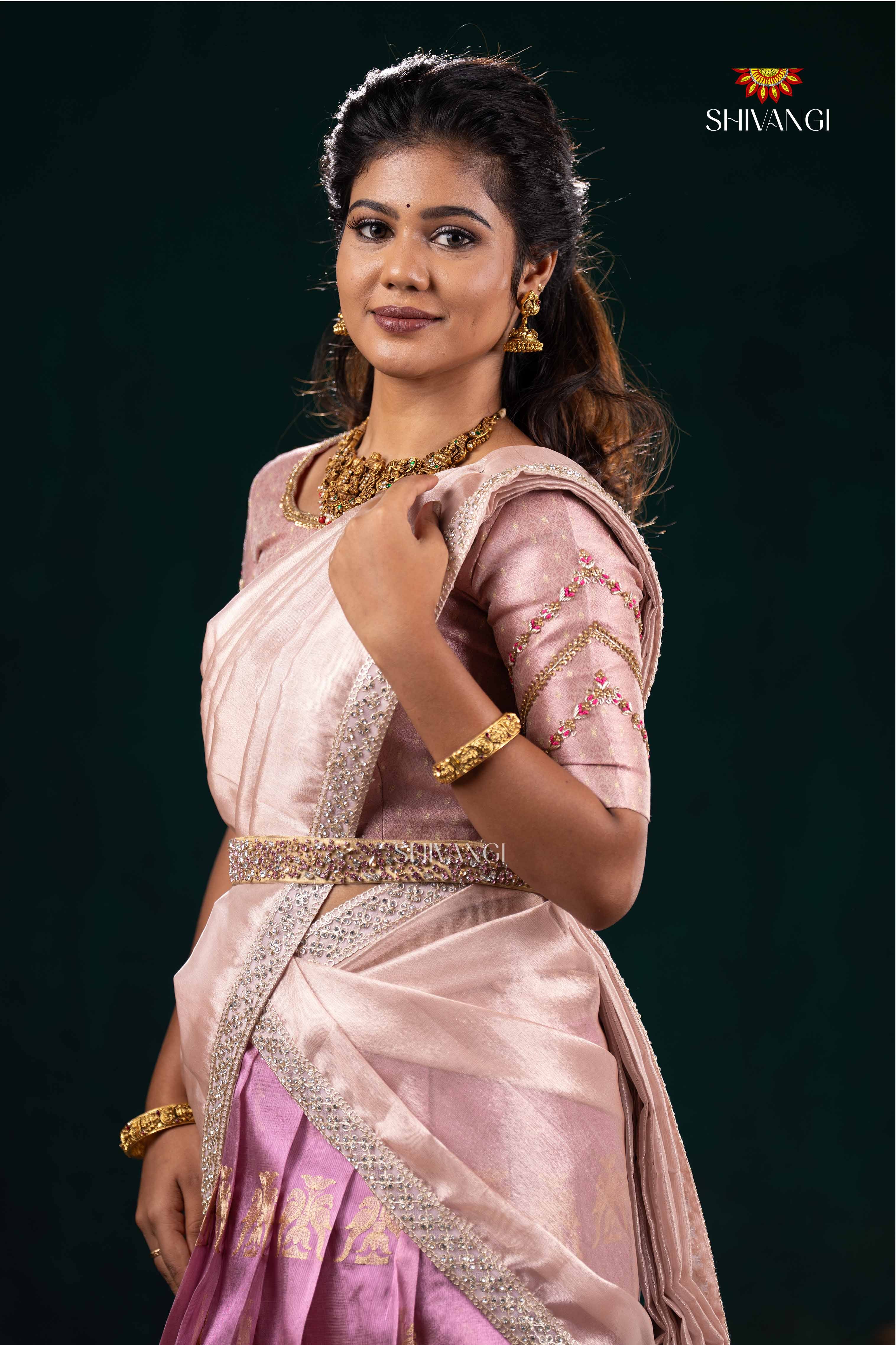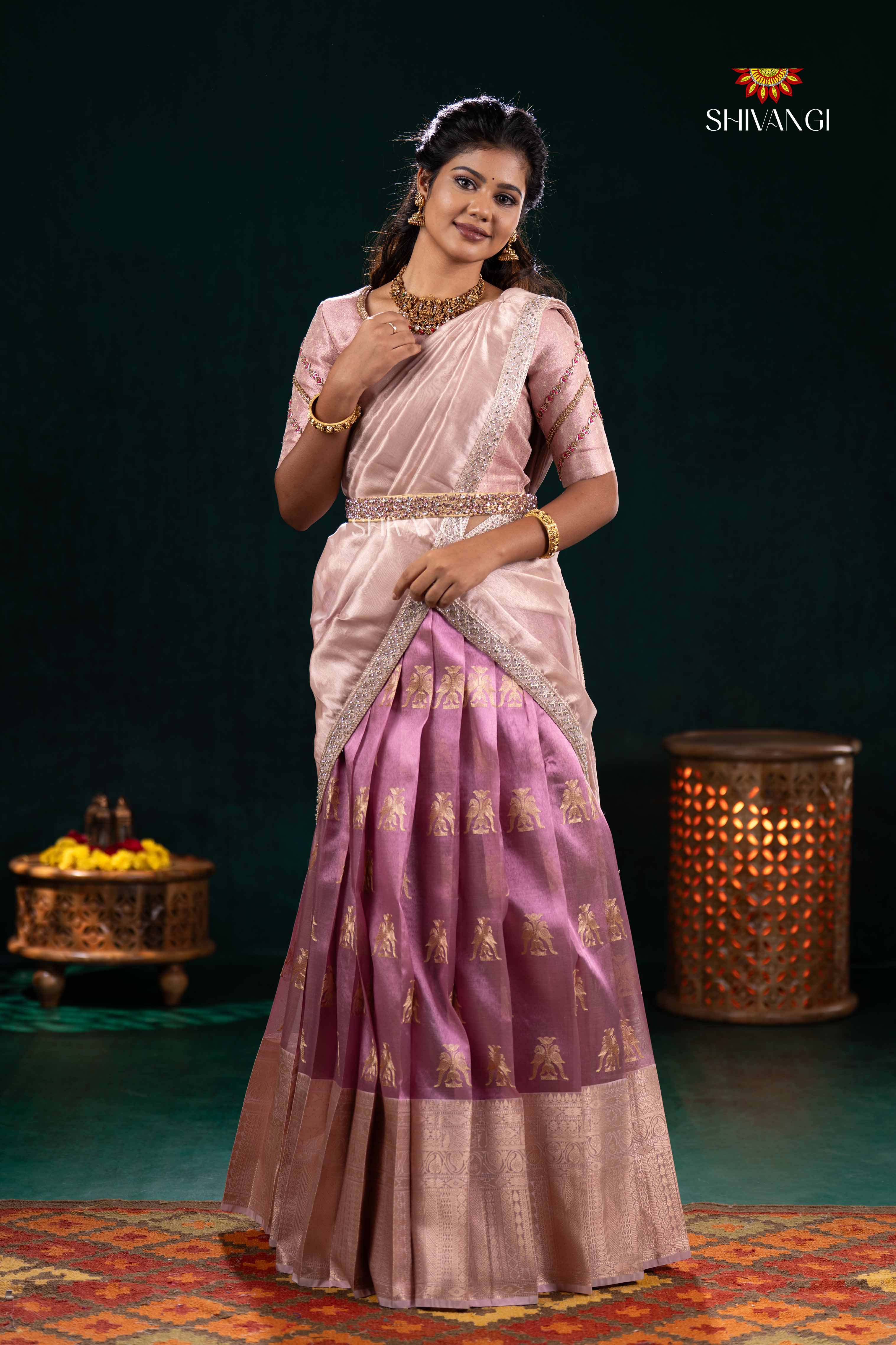 Pink Twin Parrot Half Saree | Lehenga For Girls