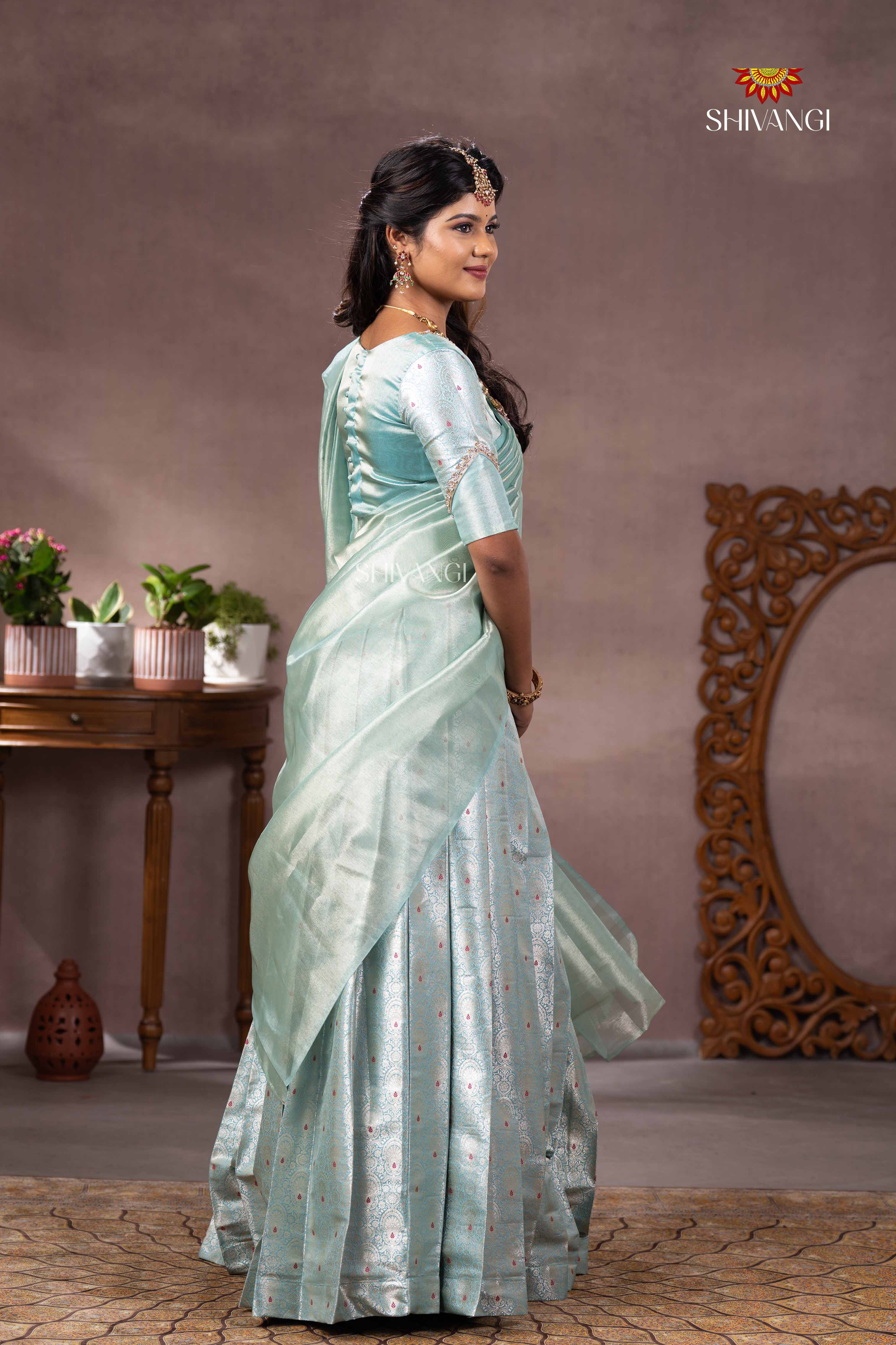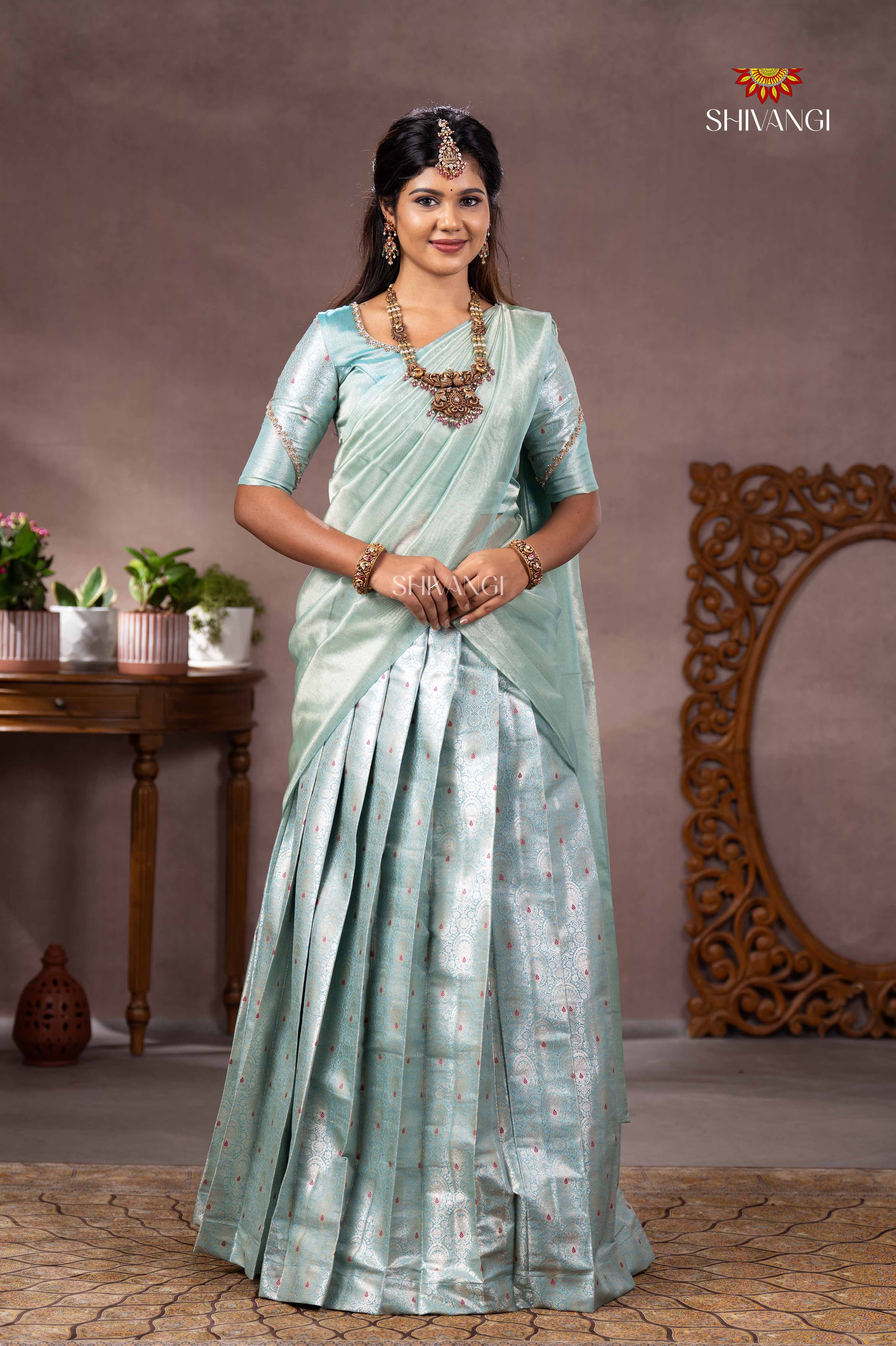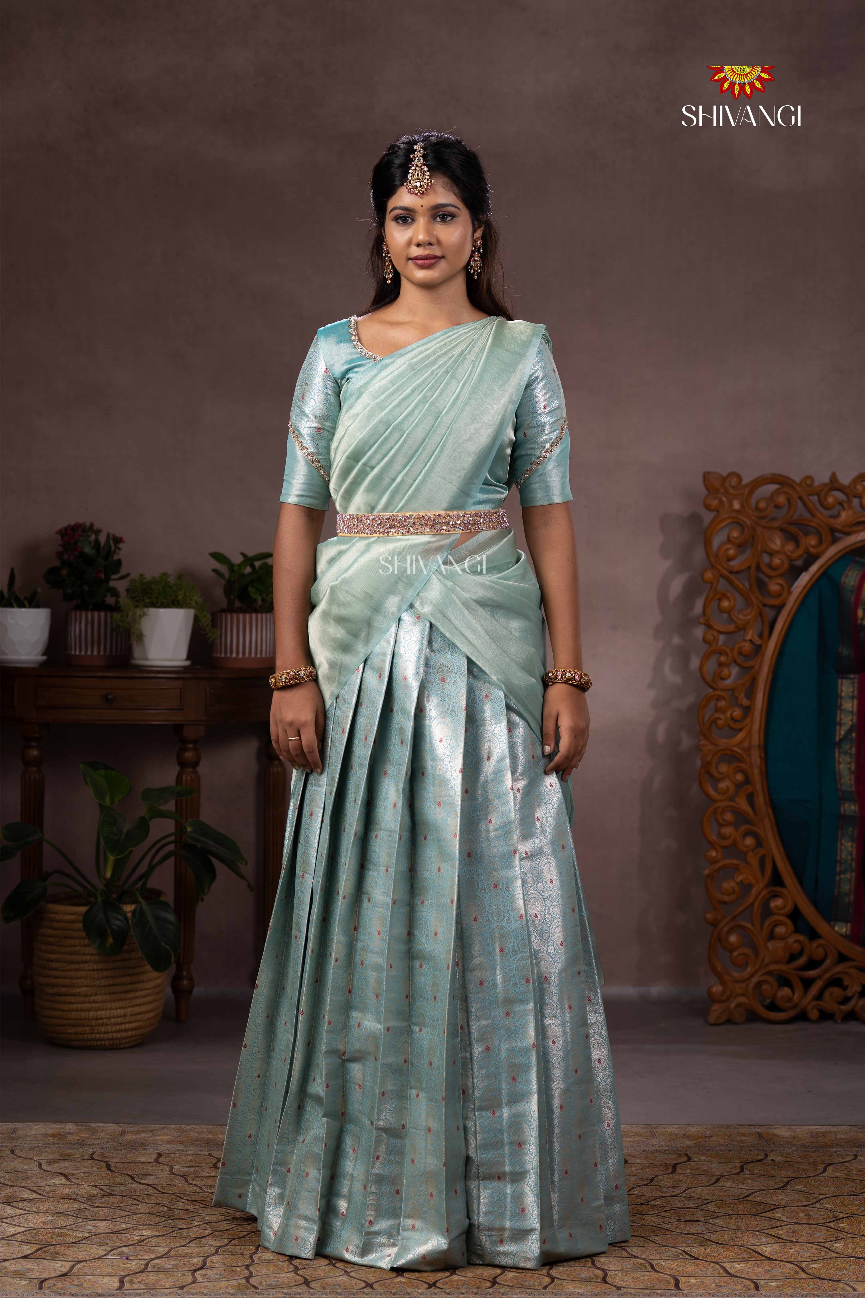 Sky Blue Brocade Waves Half Saree | Lehenga For Girls