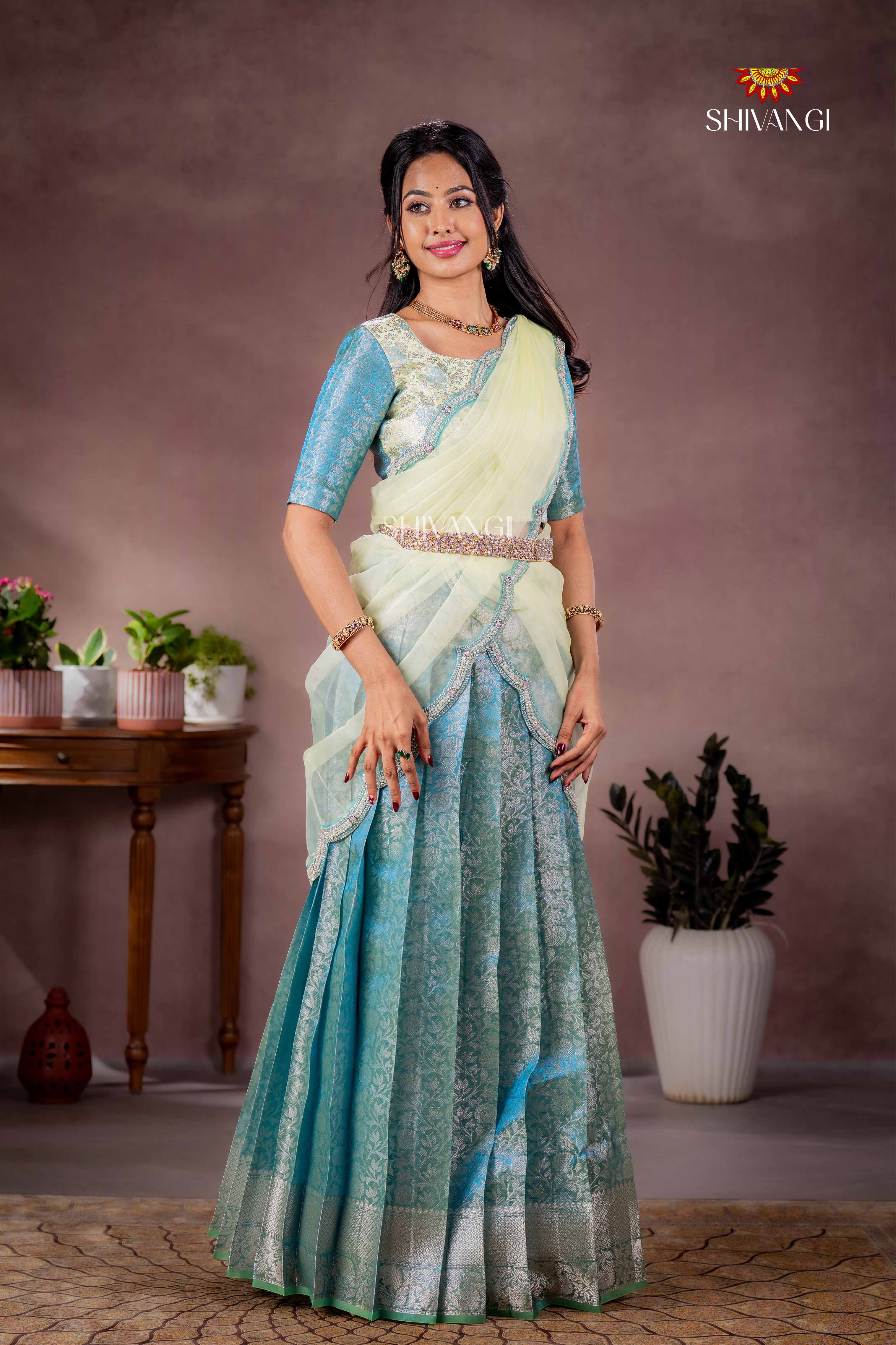 Sky Blue Silver Garden Half Saree | Lehenga For Girls