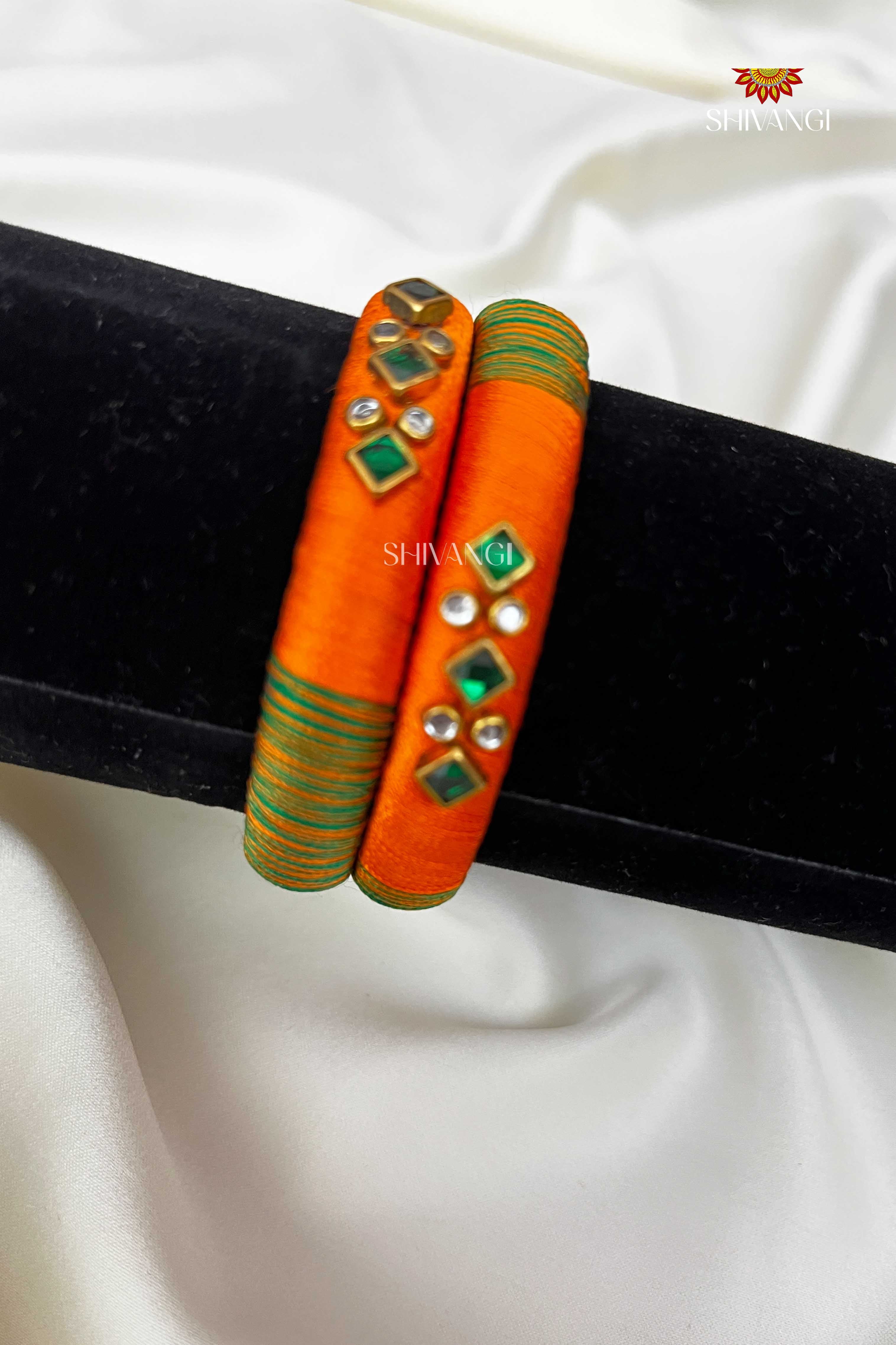 Orange Mugil Mozhi Traditional Pattu Pavadai Set for Girls