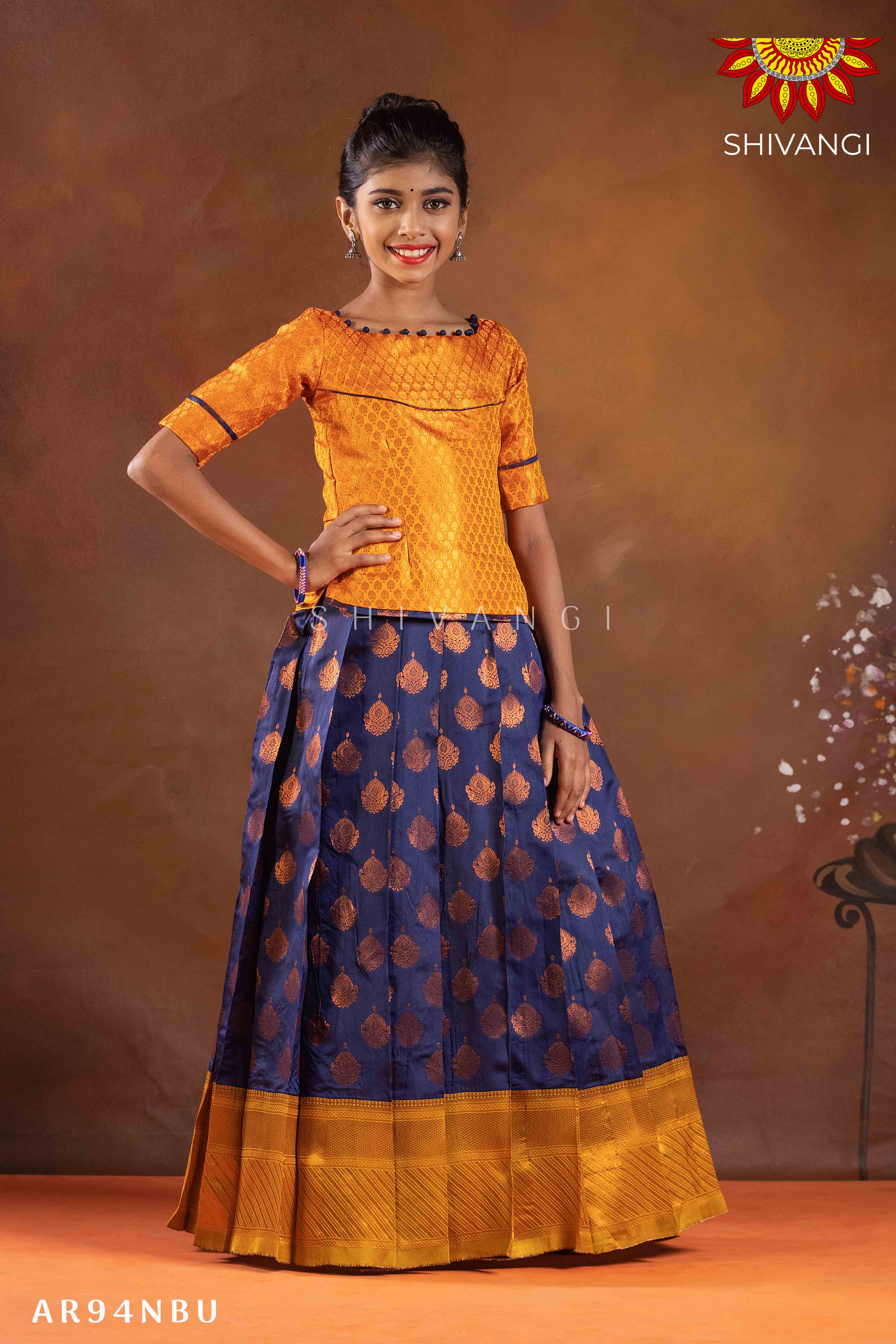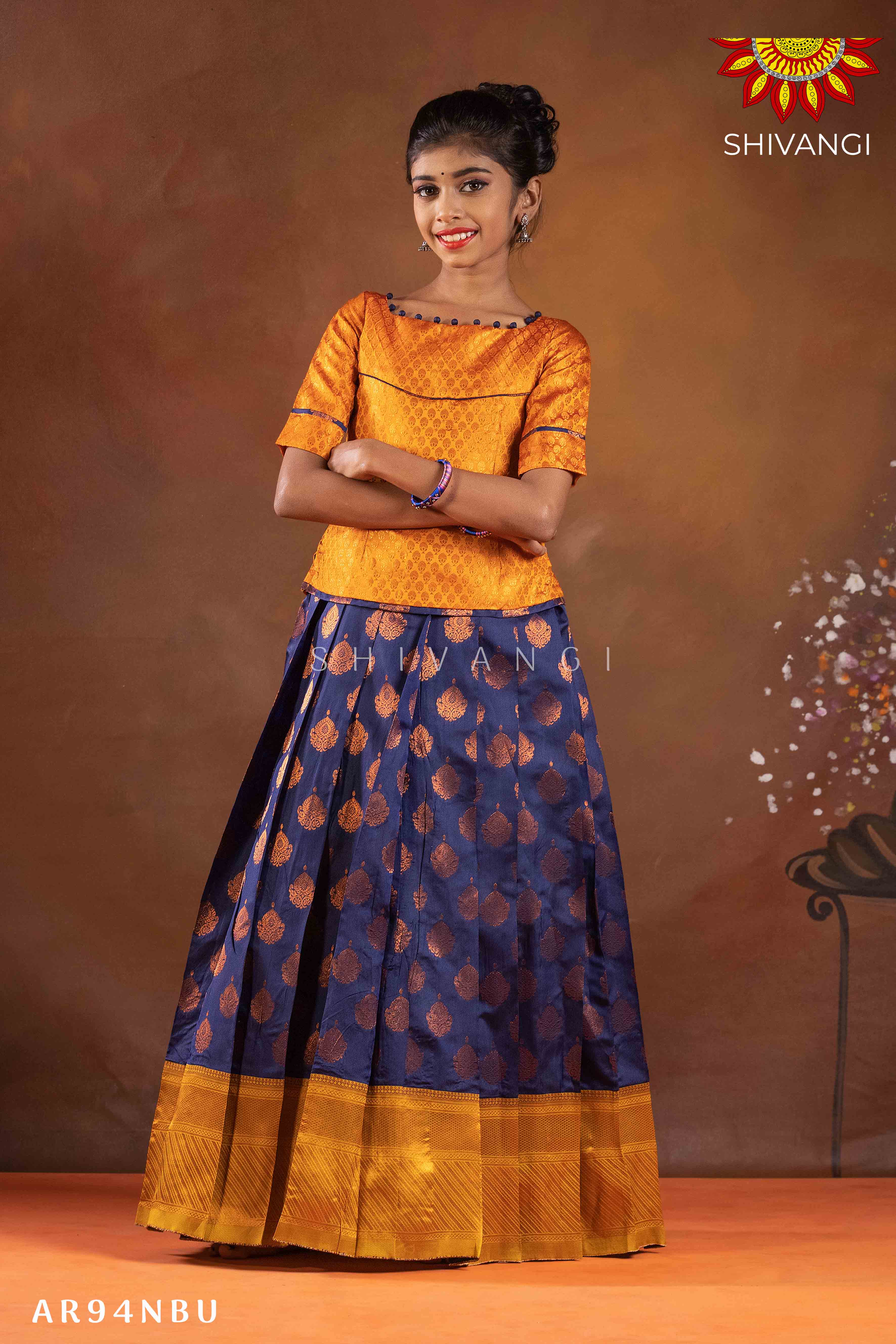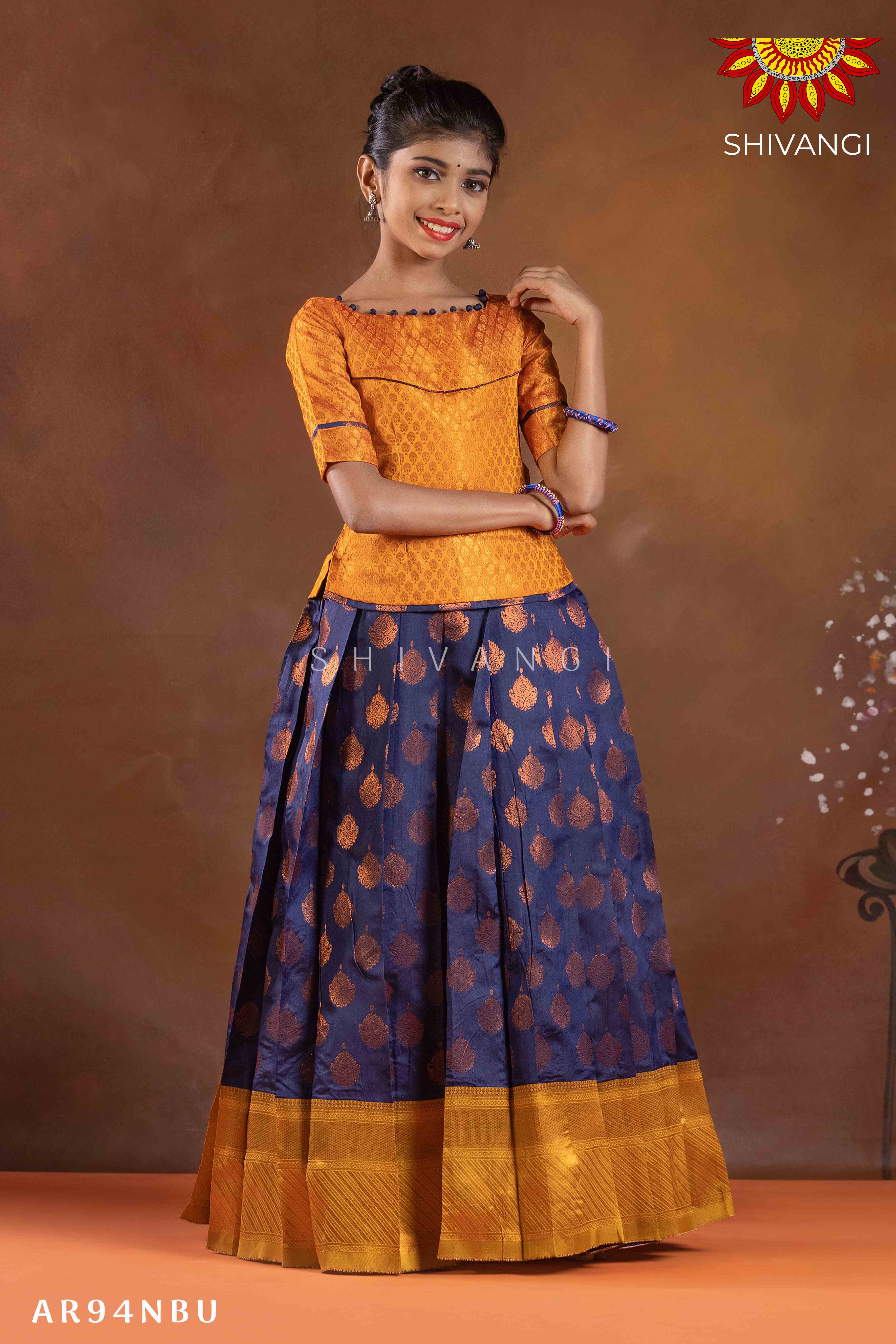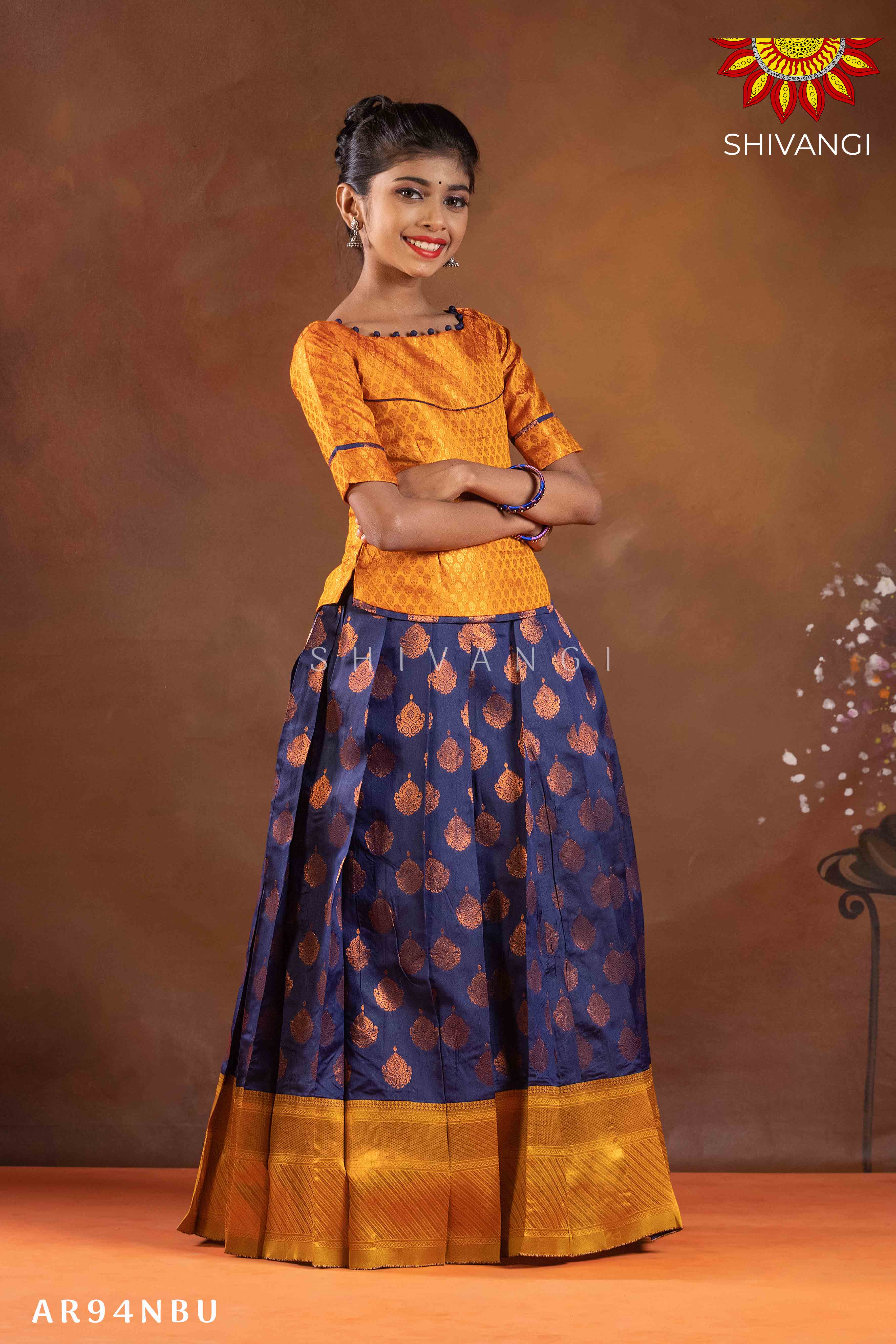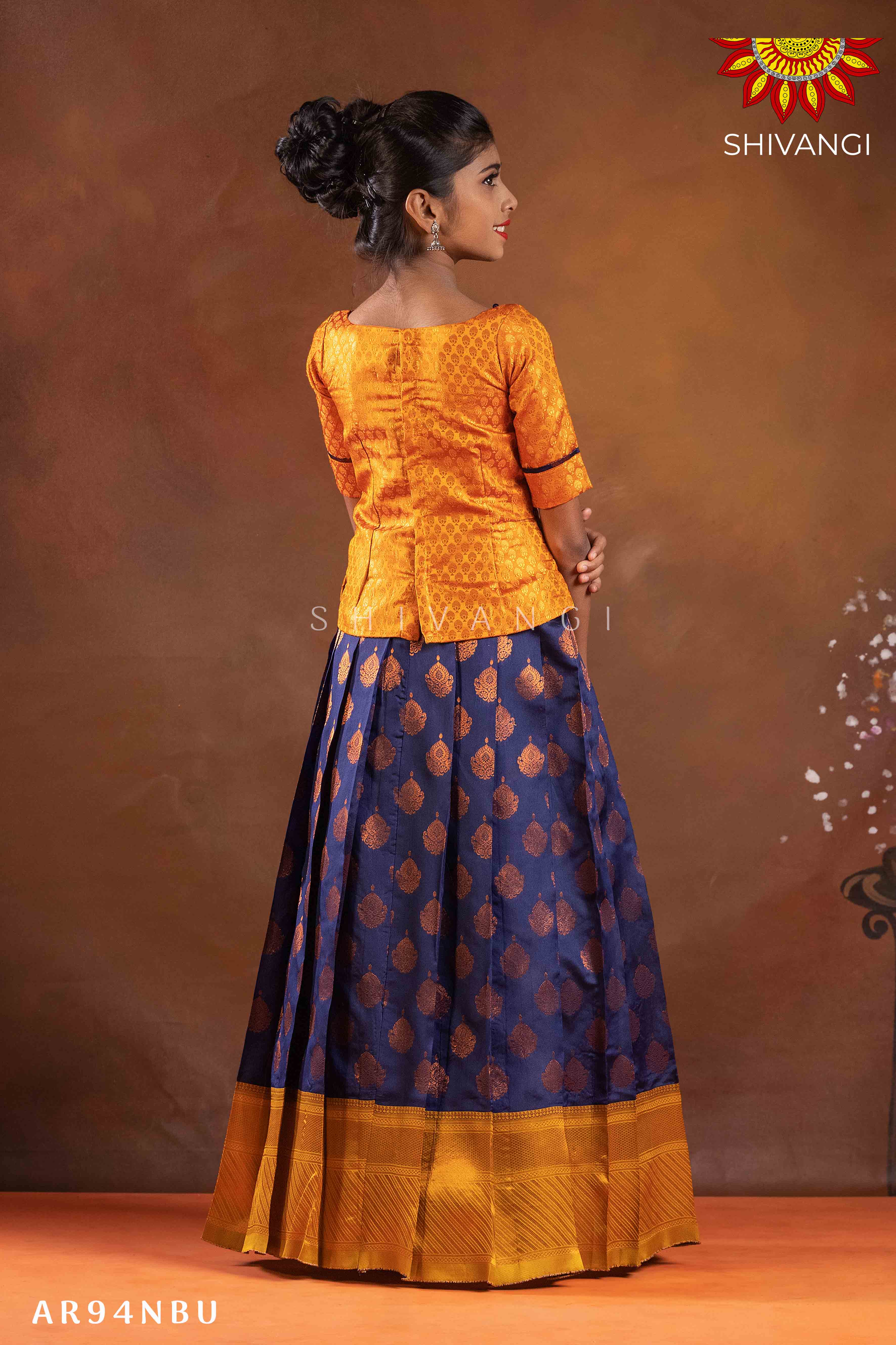 Girl Navy Blue Copper Pendant Pattu Pavadai |Langa