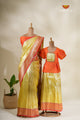 Green Hook Half White Mom And Daughter Saree and Pattu Pavadai Combo Set !!!