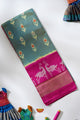 Green Pochampally Silk Pattu Pavadai Unstitched Material For Kids !!!