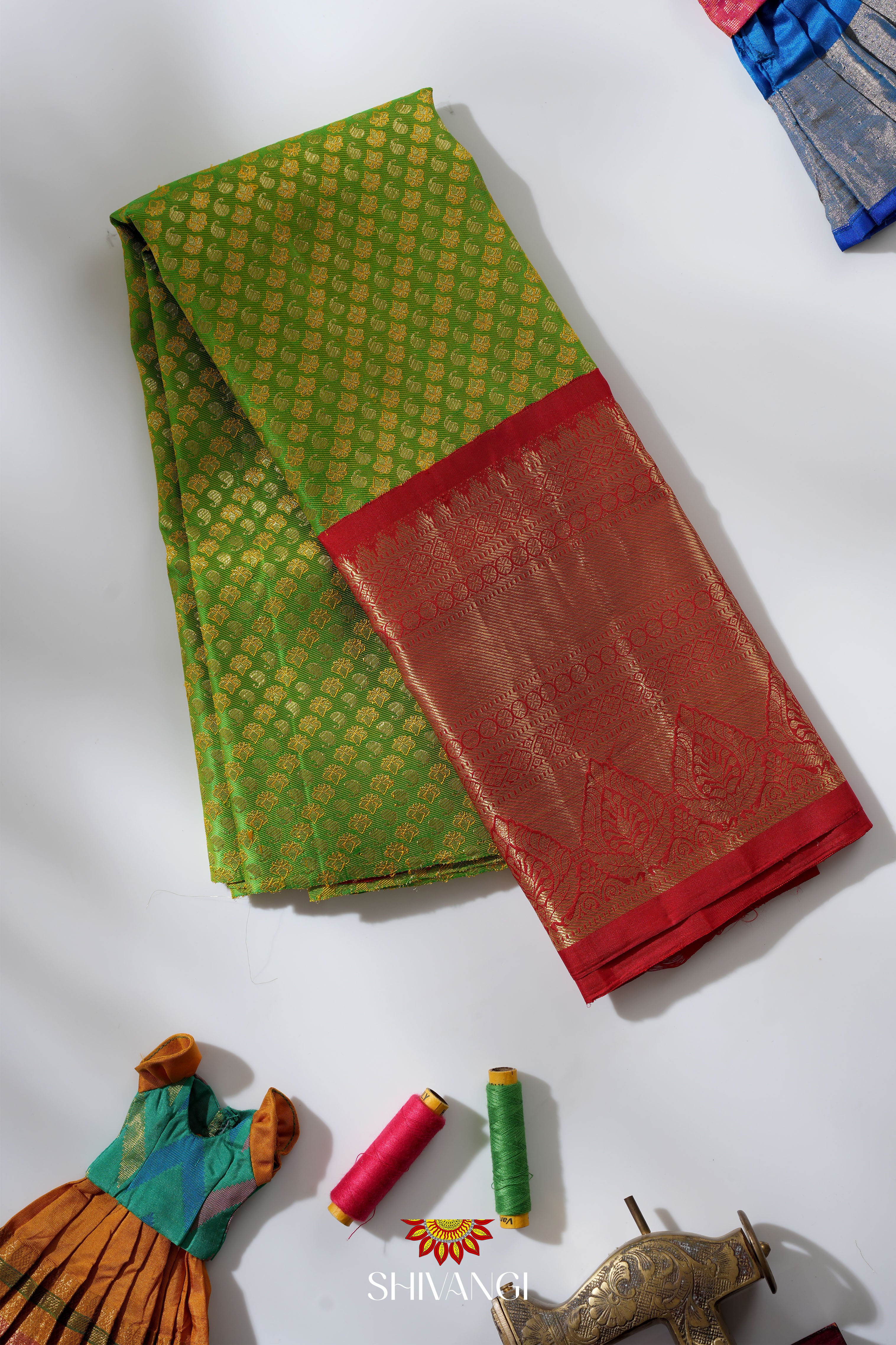 Green Silk Pattu Pavadai Unstitched Material For Kids !!!