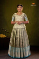 Half White Golden Flame Traditional Pattu Pavadai Set for Girls