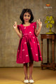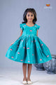 Navy Blue Chanderi Lotus Frock For Kids