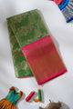 Orange Pure Silk Pattu Pavadai Unstitched Material For Kids !!!