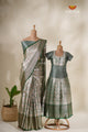 Paithani Garden Blue Mom And Daughter Saree and Pattu Pavadai Combo Set !!!