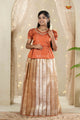 Peach Golden Elephant Traditional Pattu Pavadai Set for Girls