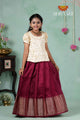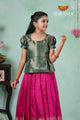 Premium Collection - Dark Green Purple Floral Diamond Butta Raw Silk Pattu Pavadai