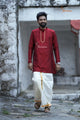 Red Silk Cotton Kurta For Boys