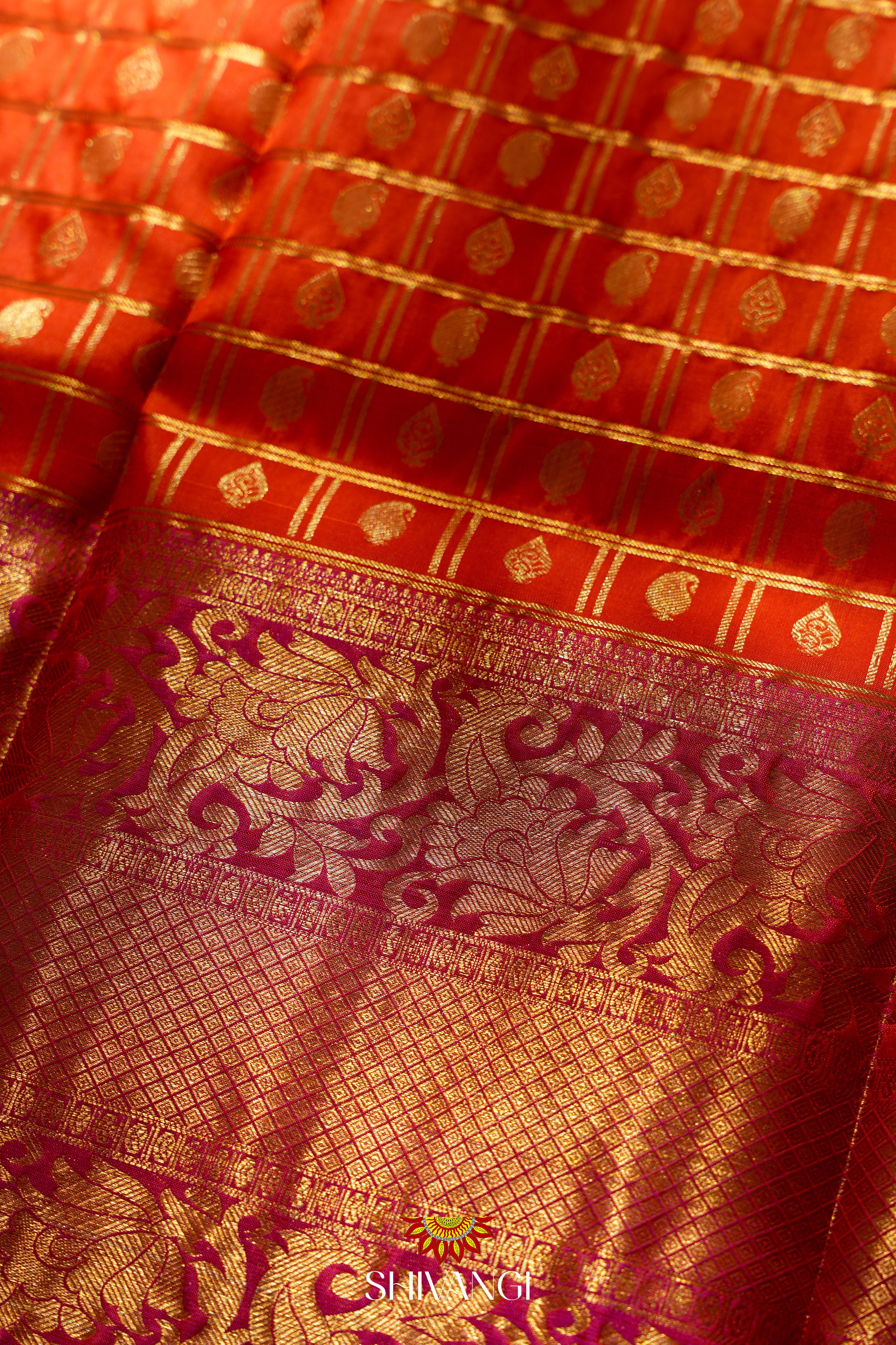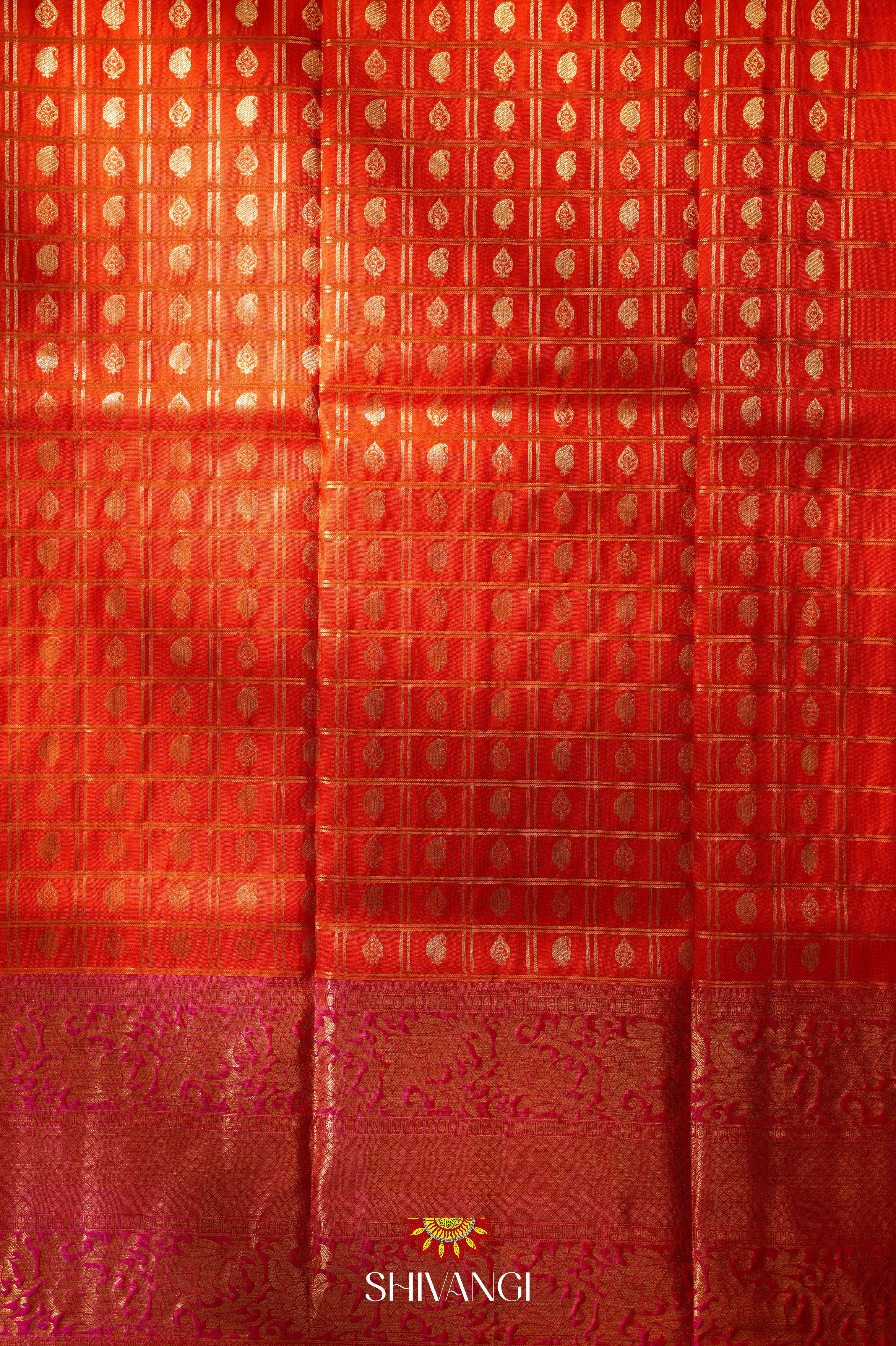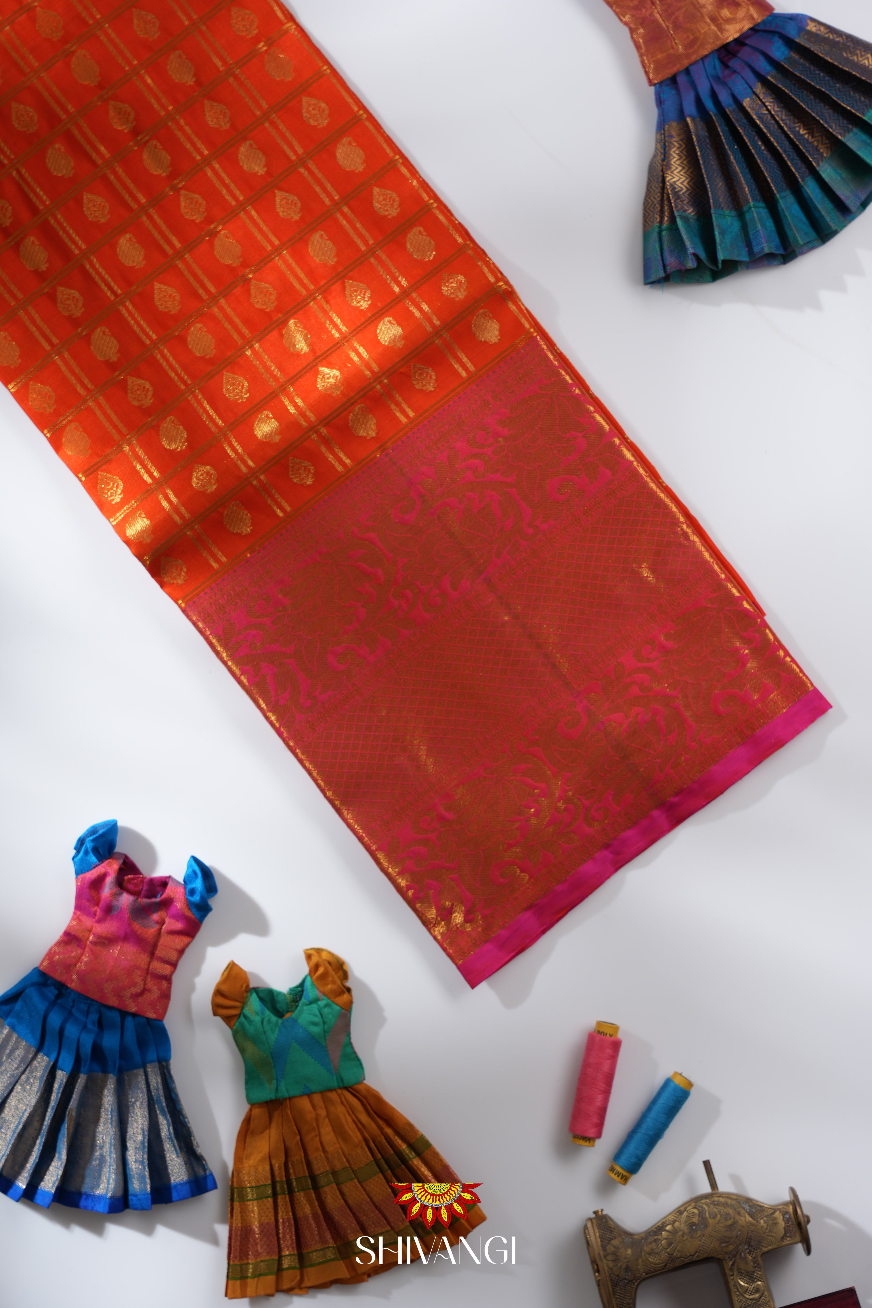 Orange Silk Pattu Pavadai Unstitched Material For Kids !!!