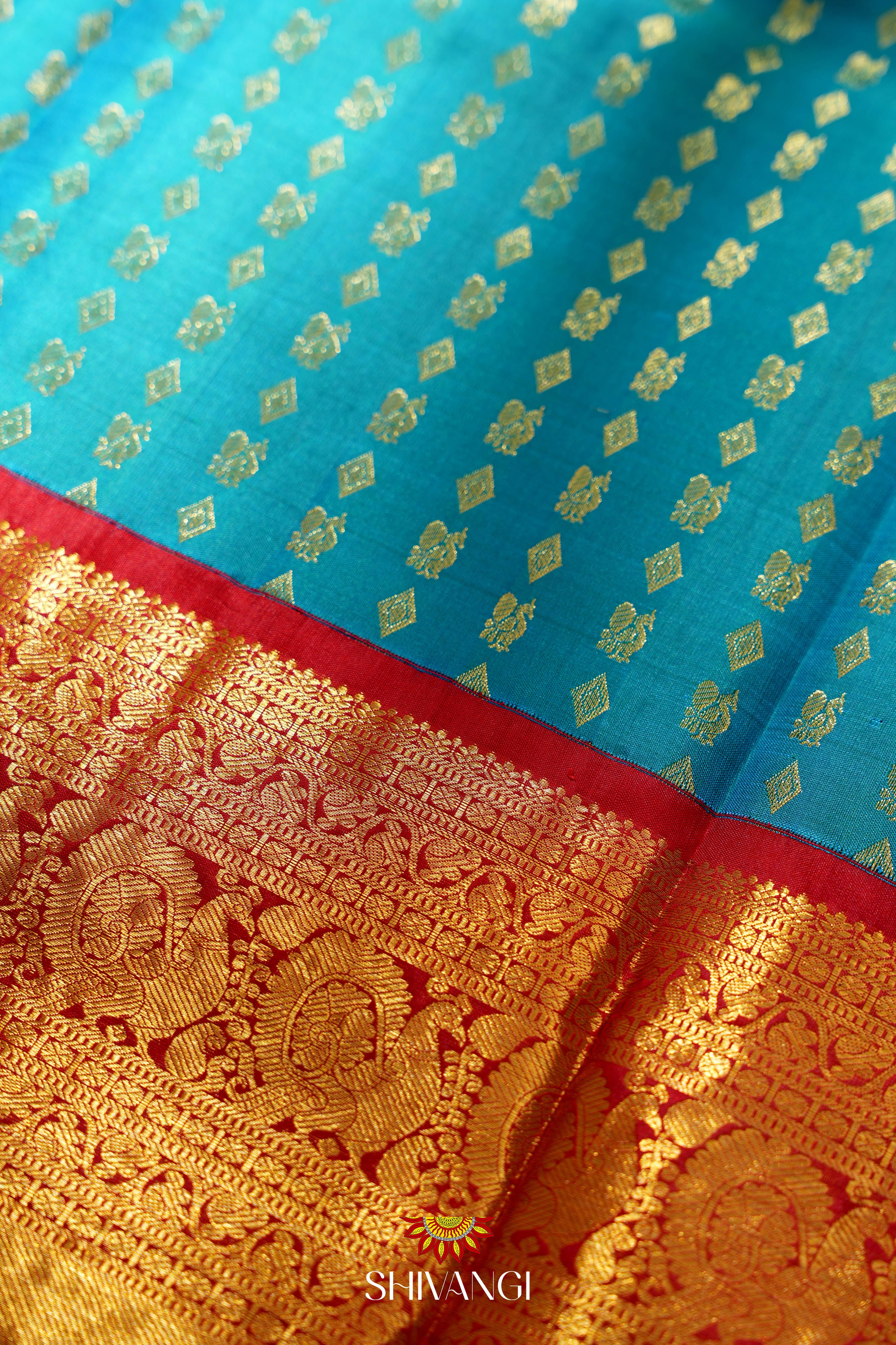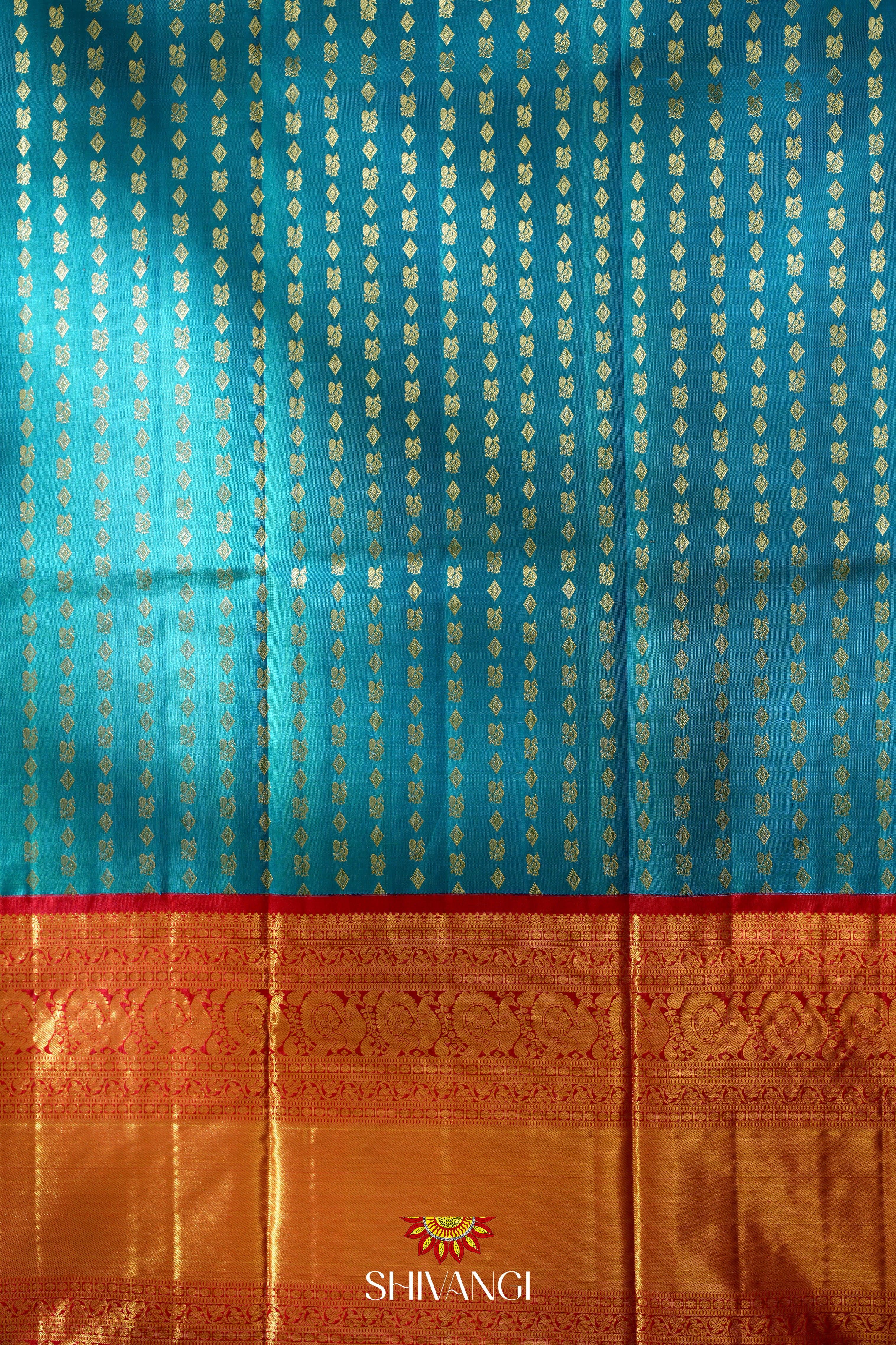 Peacock Blue Silk Pattu Pavadai Unstitched Material For Kids !!!