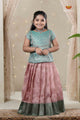 Sky Blue Climbing Rose Traditional Pattu Pavadai Set for Girls