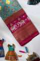 Sky Blue Pochampally Silk Pattu Pavadai Unstitched Material For Kids !!!