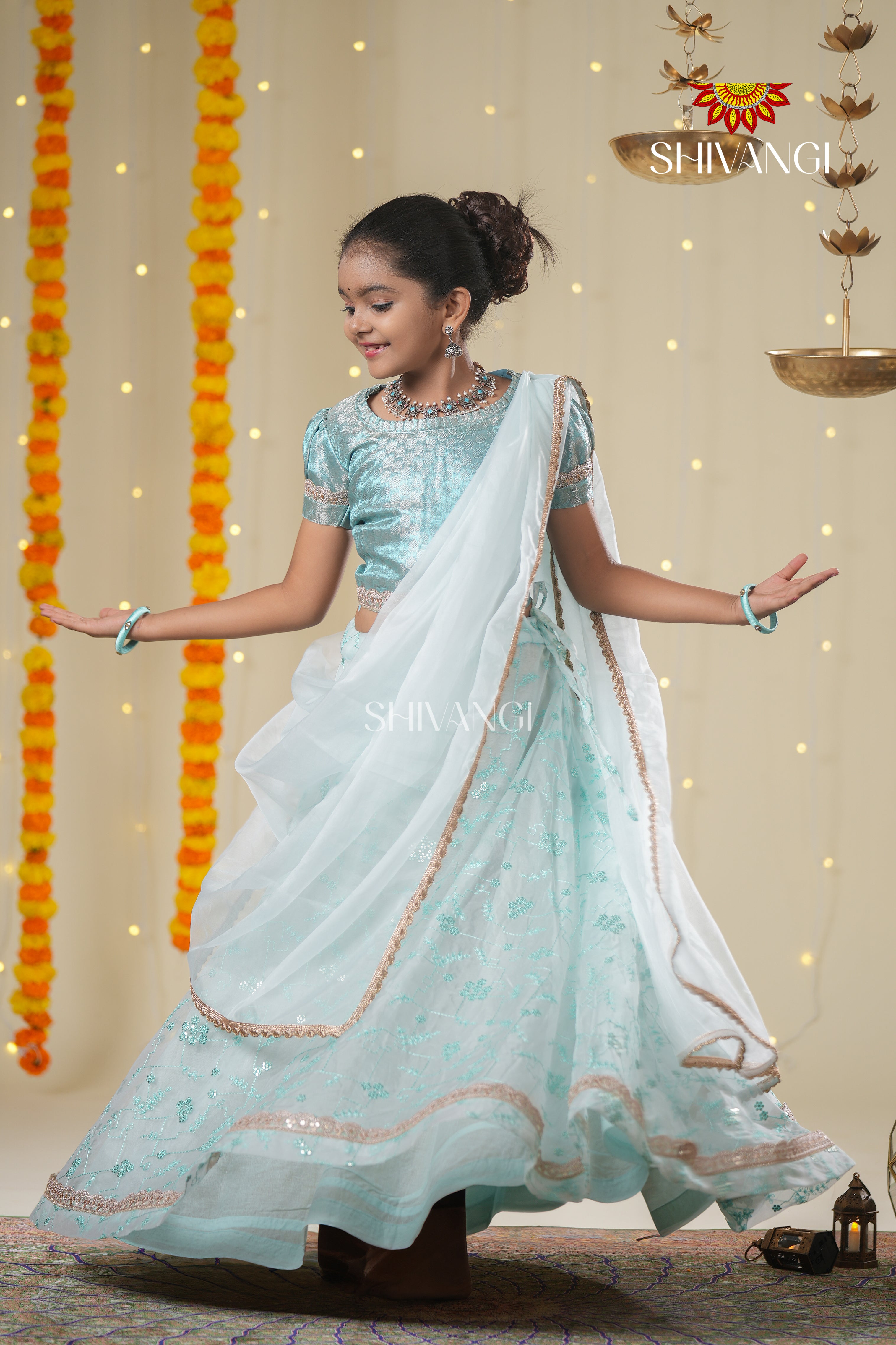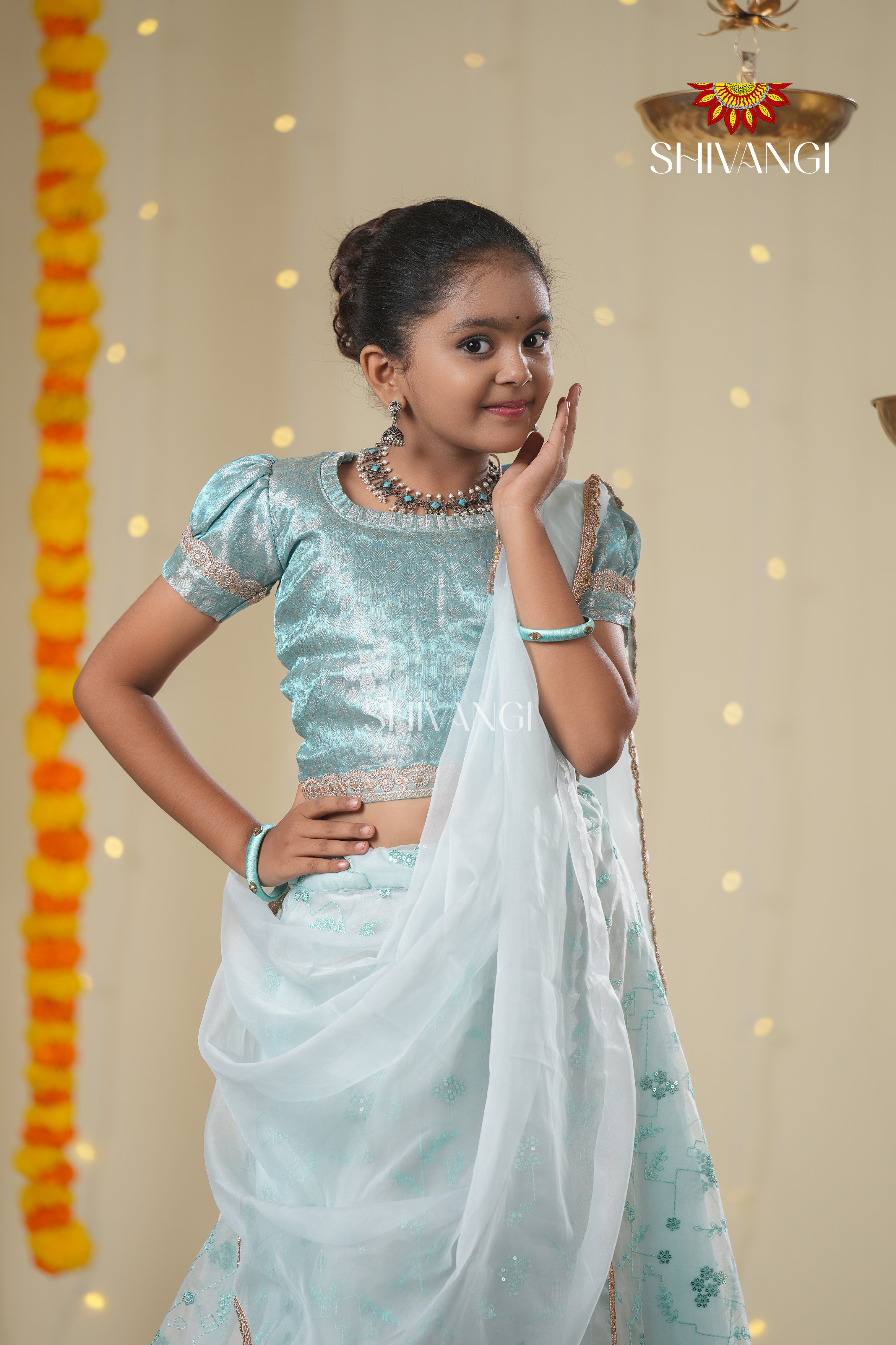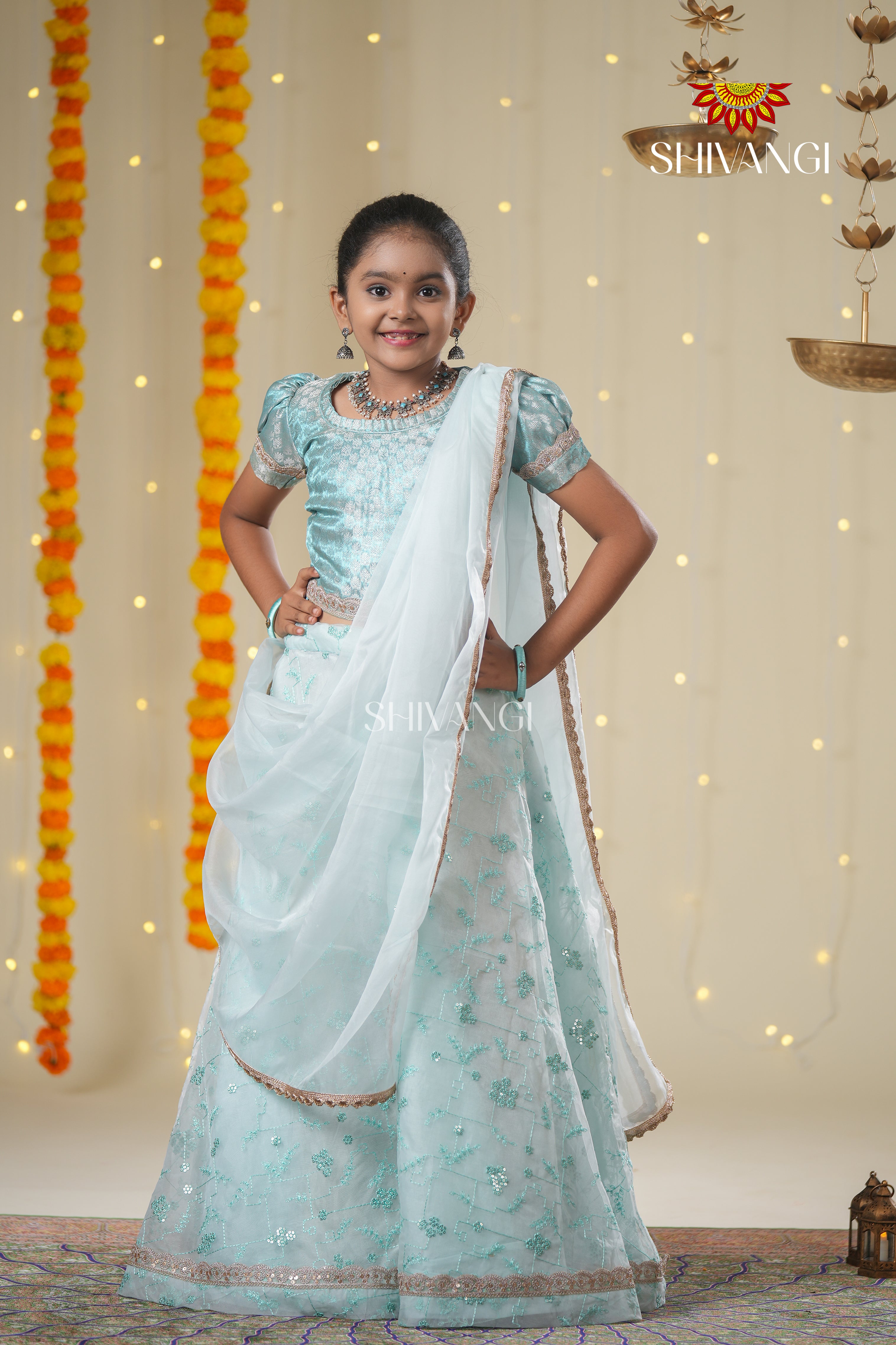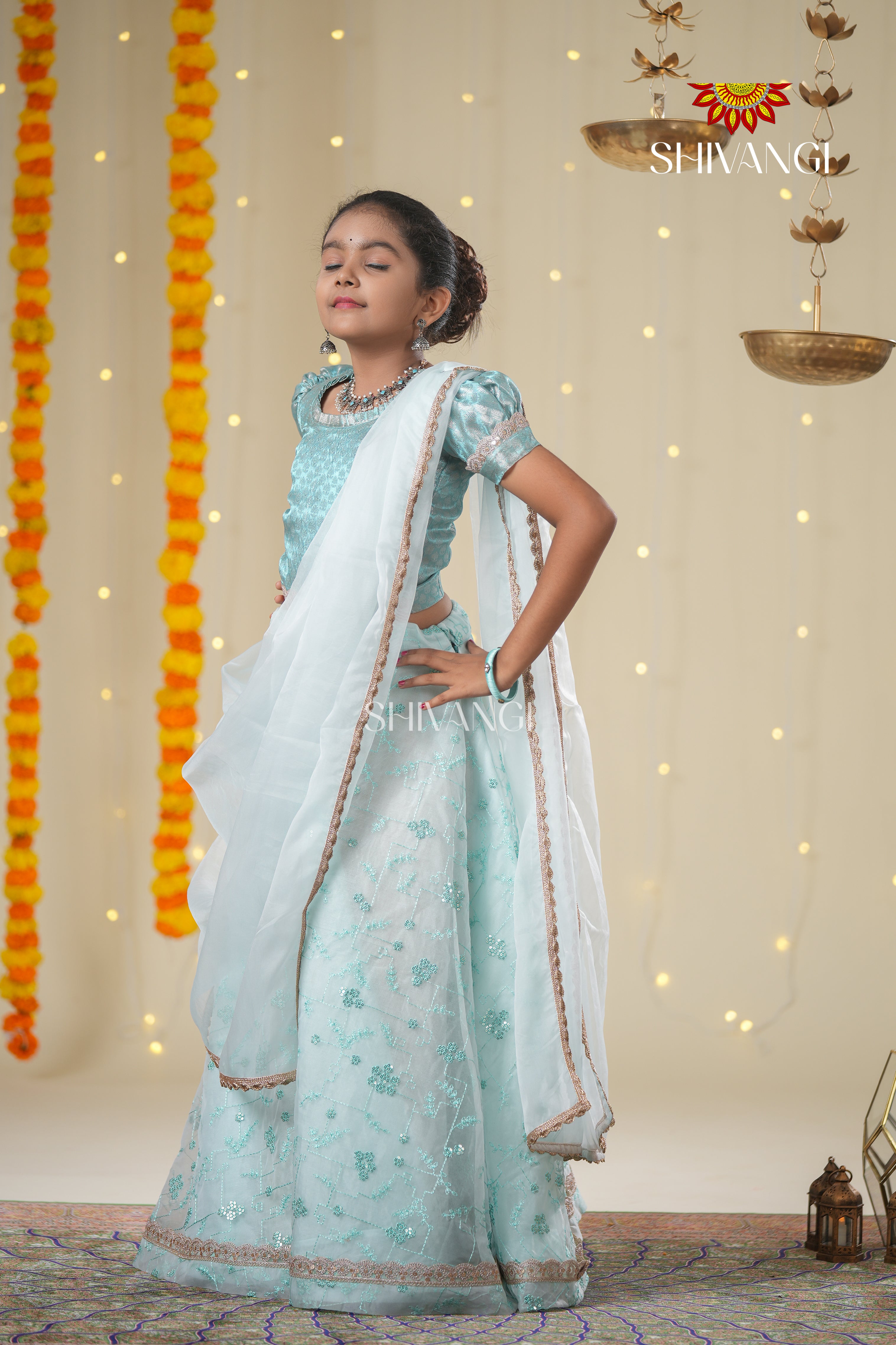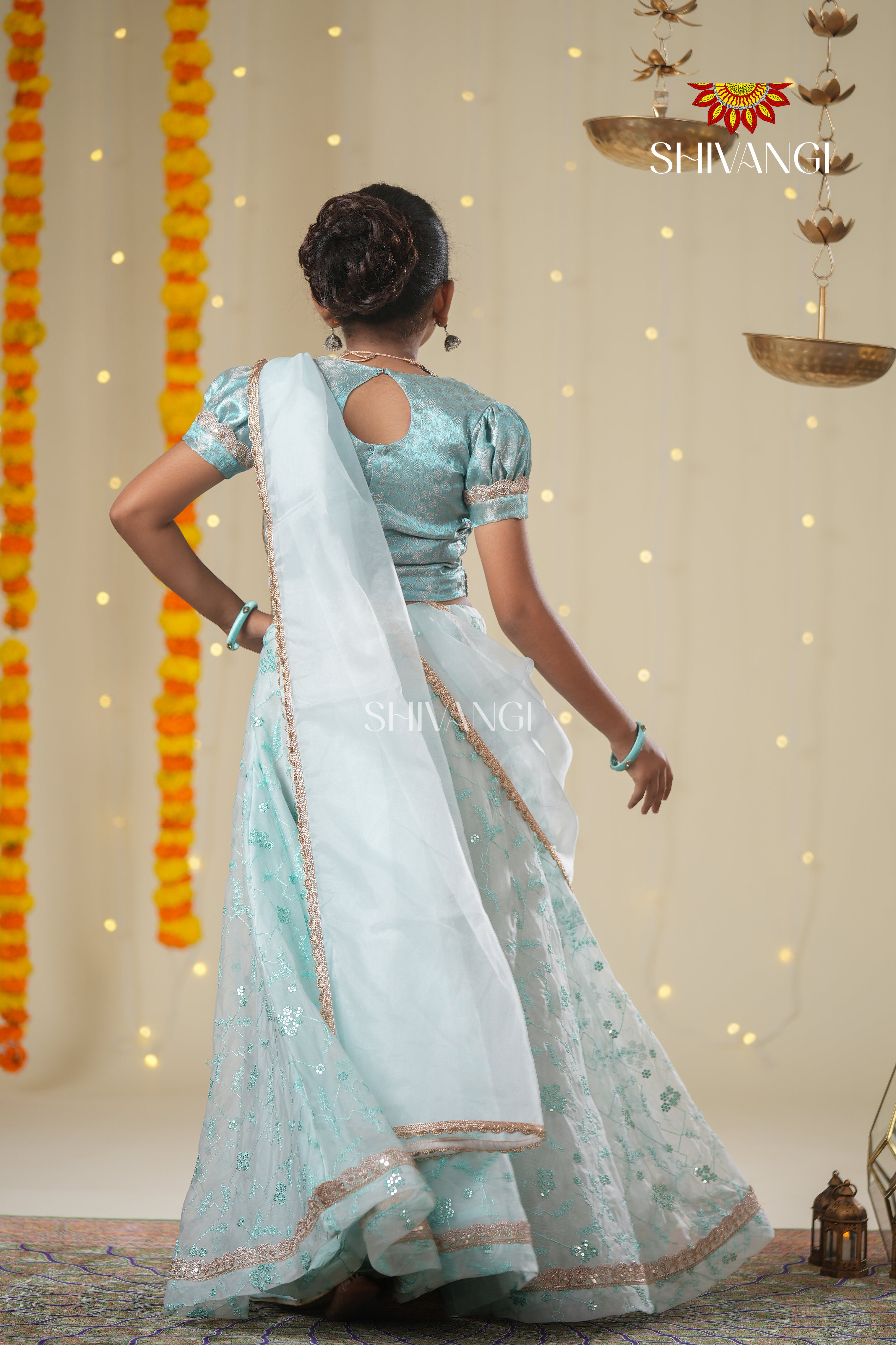 Festive Collection - Blue Organza Maize Lehenga !!!