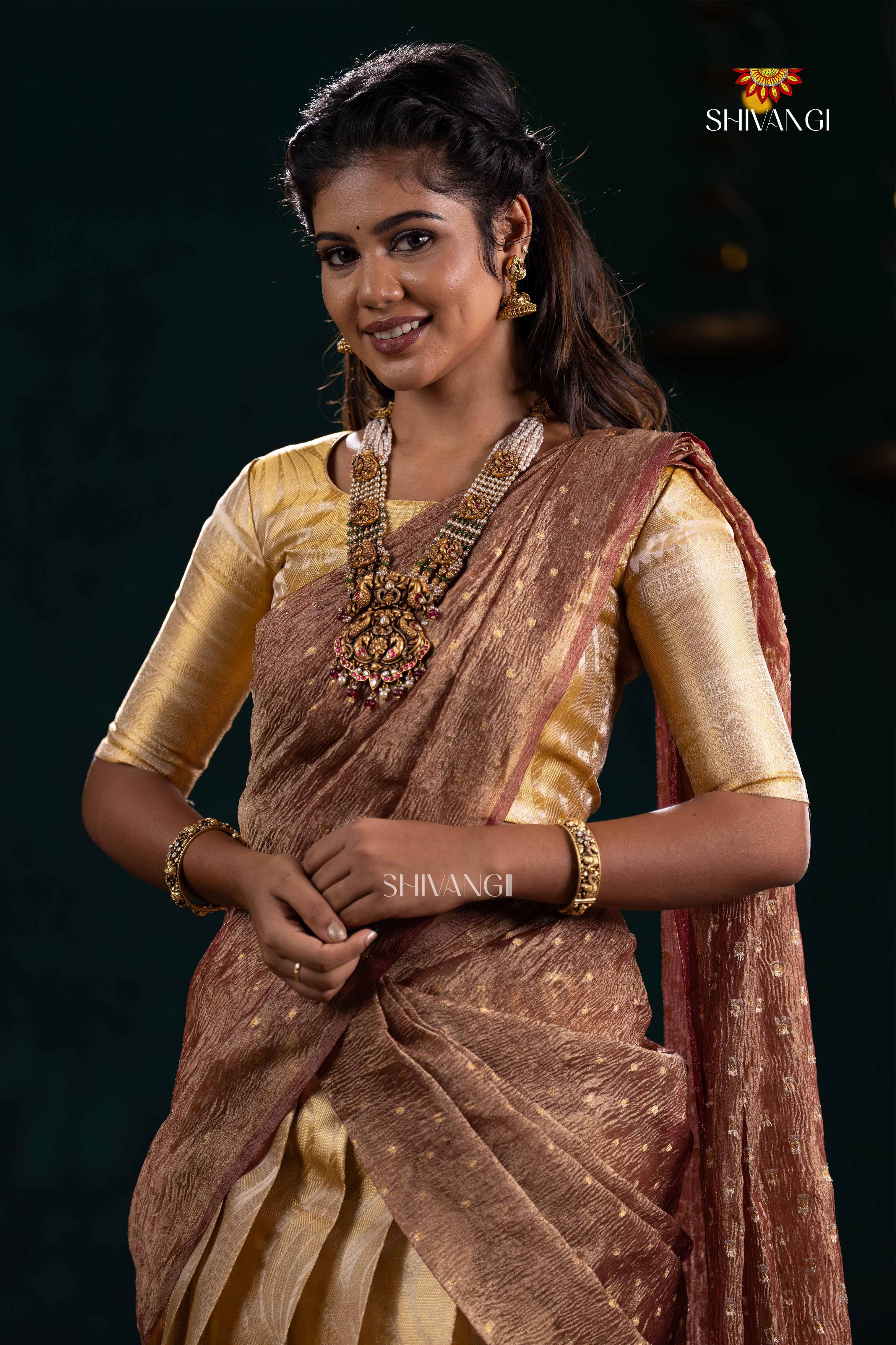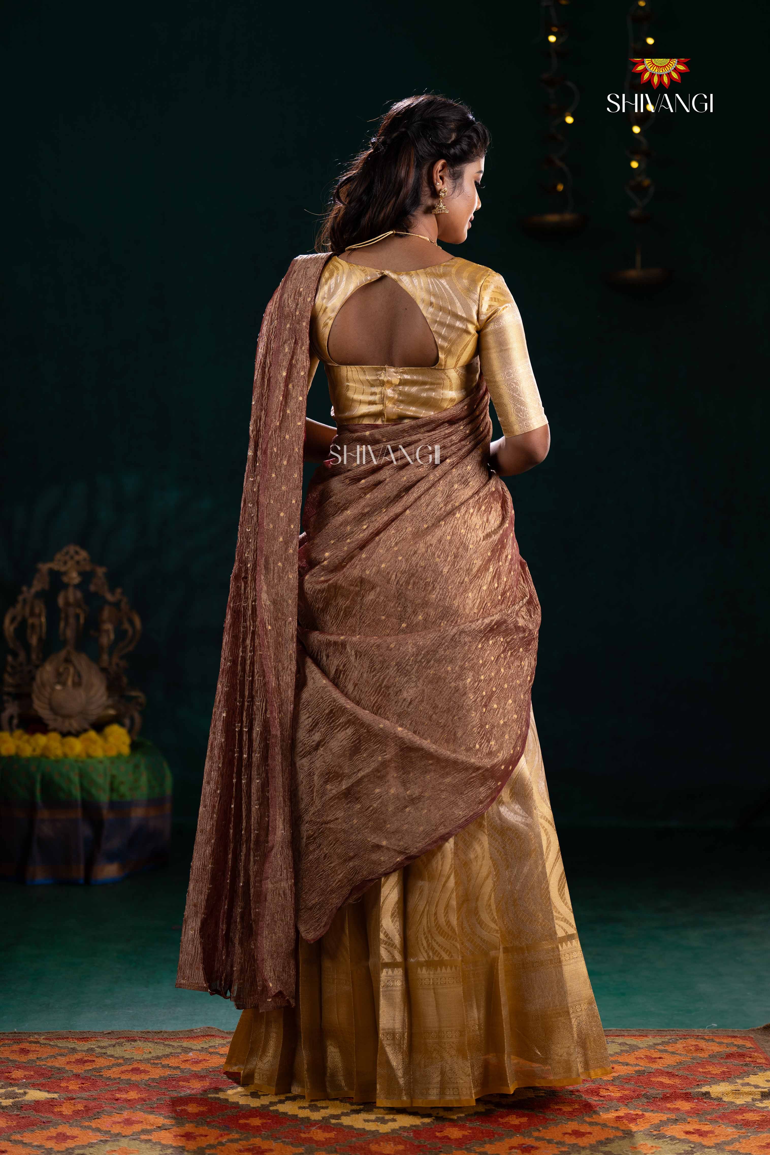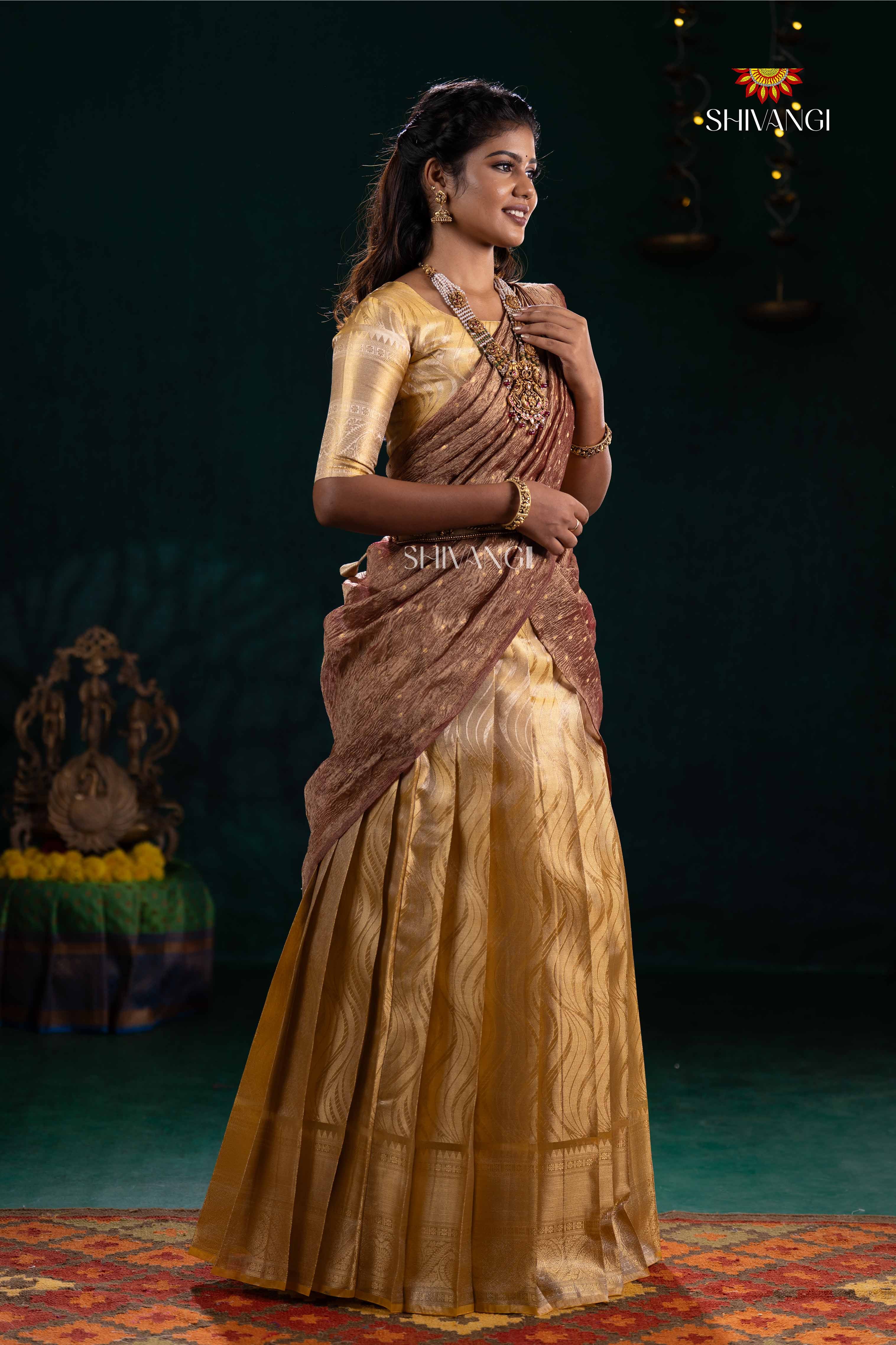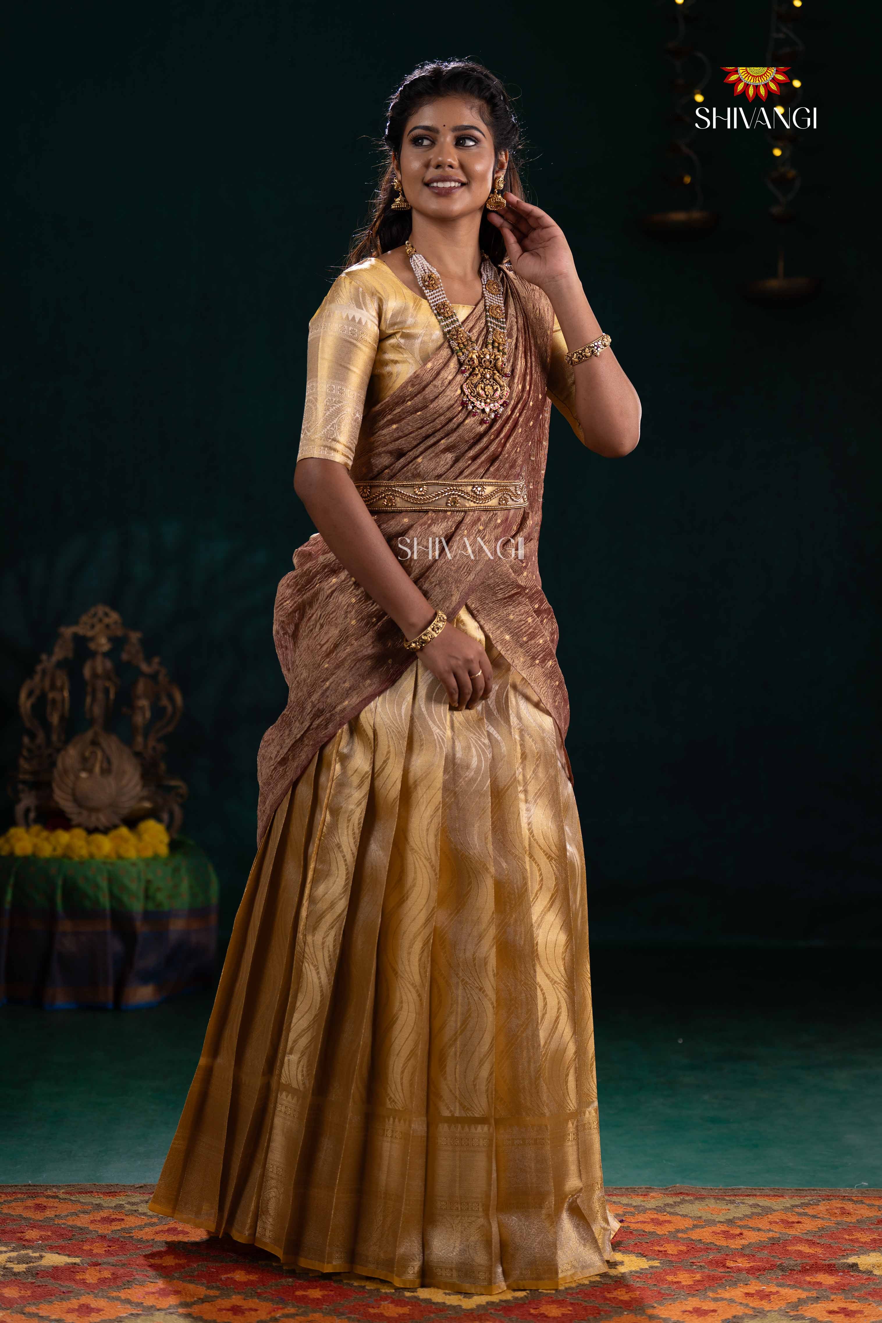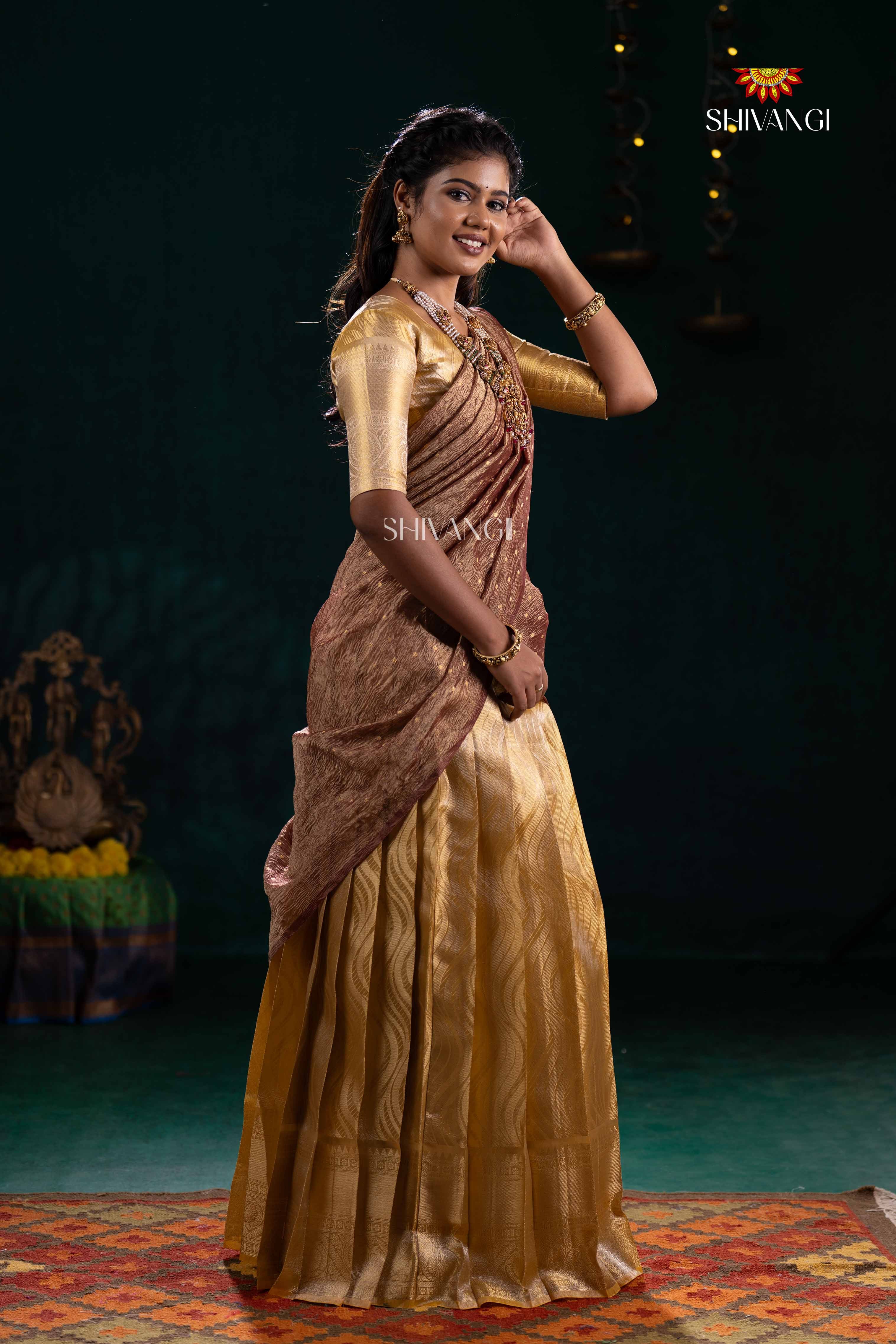 Gold Golden Flames Half Saree | Lehenga For Girls