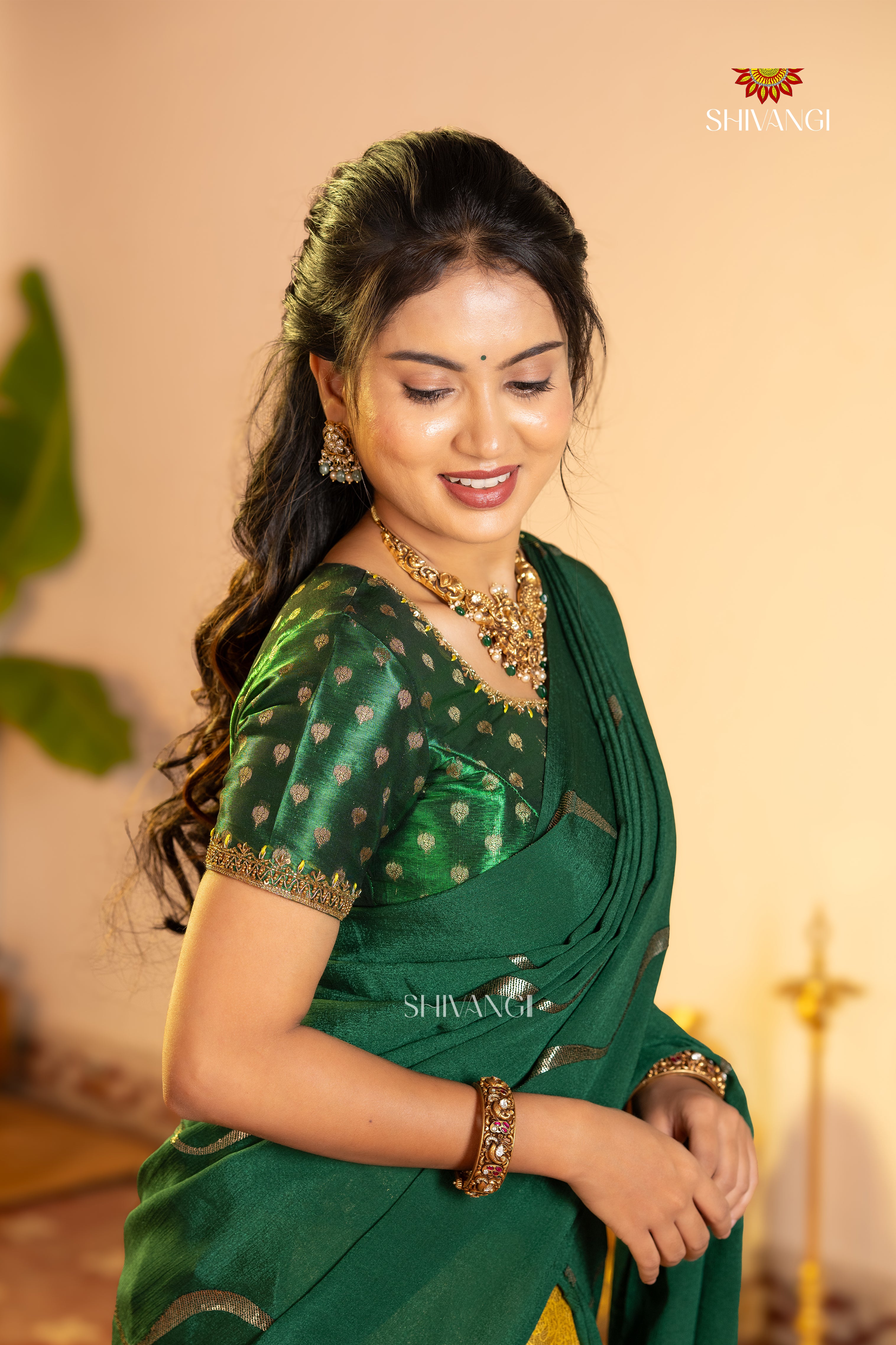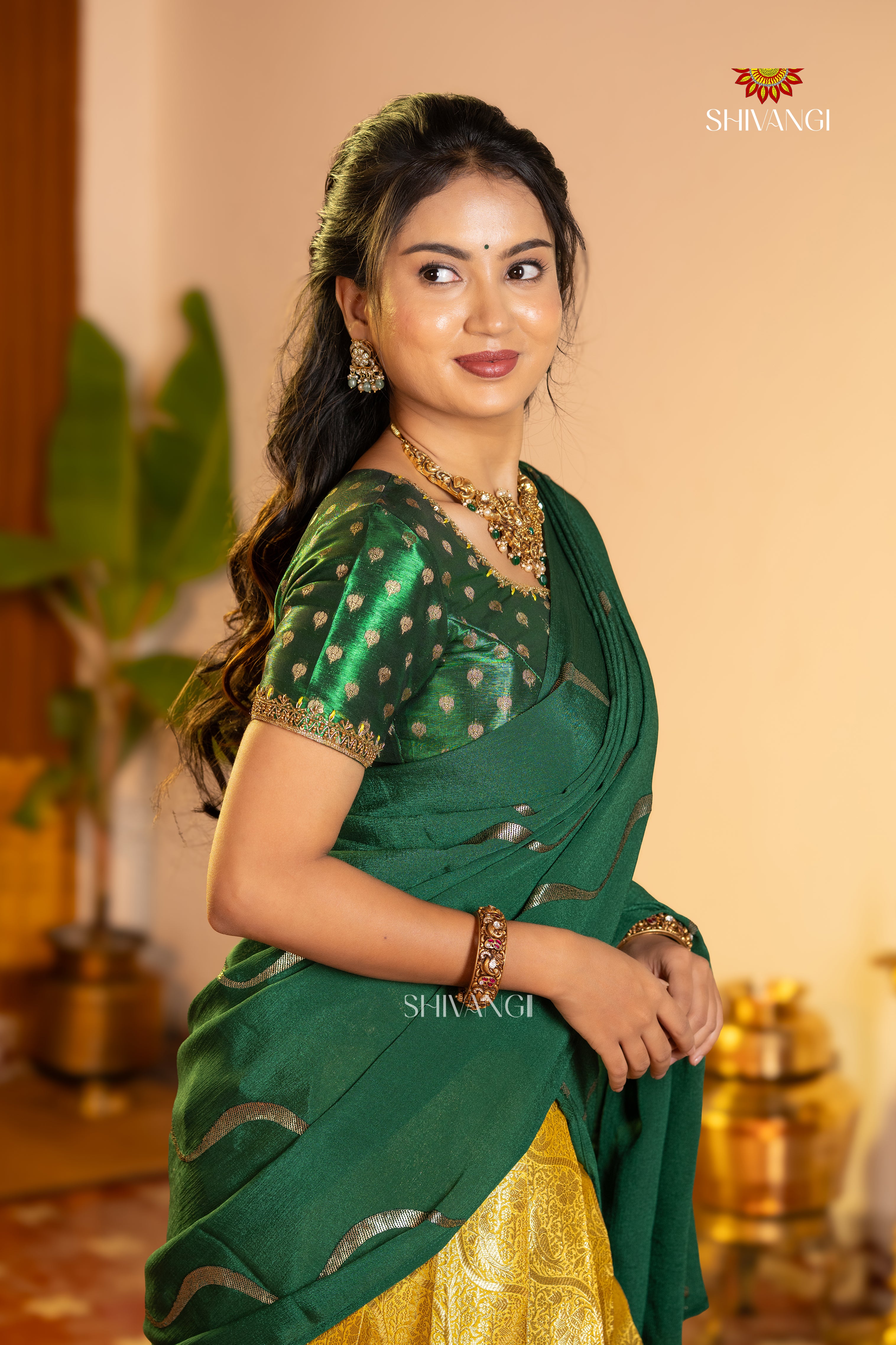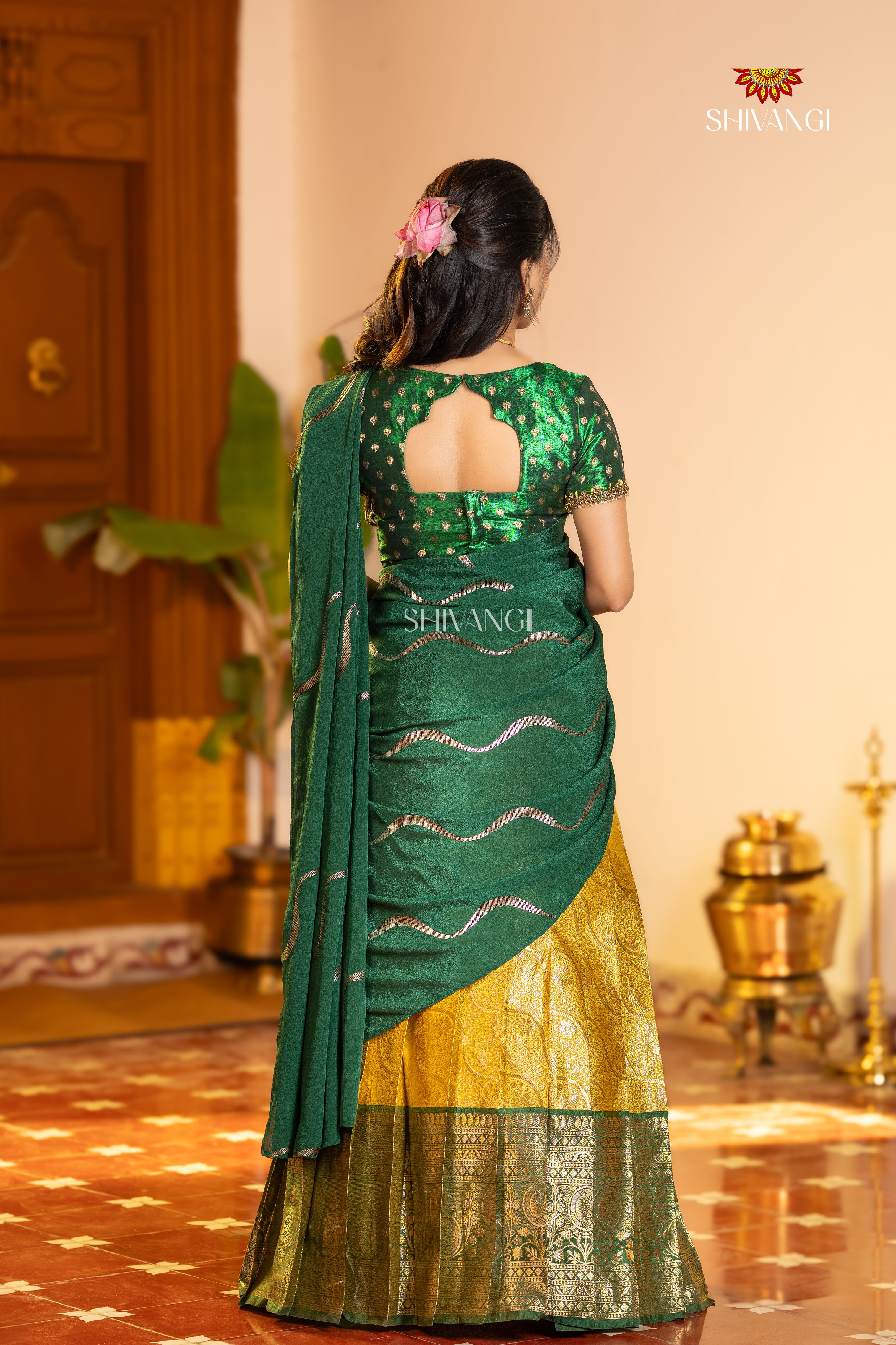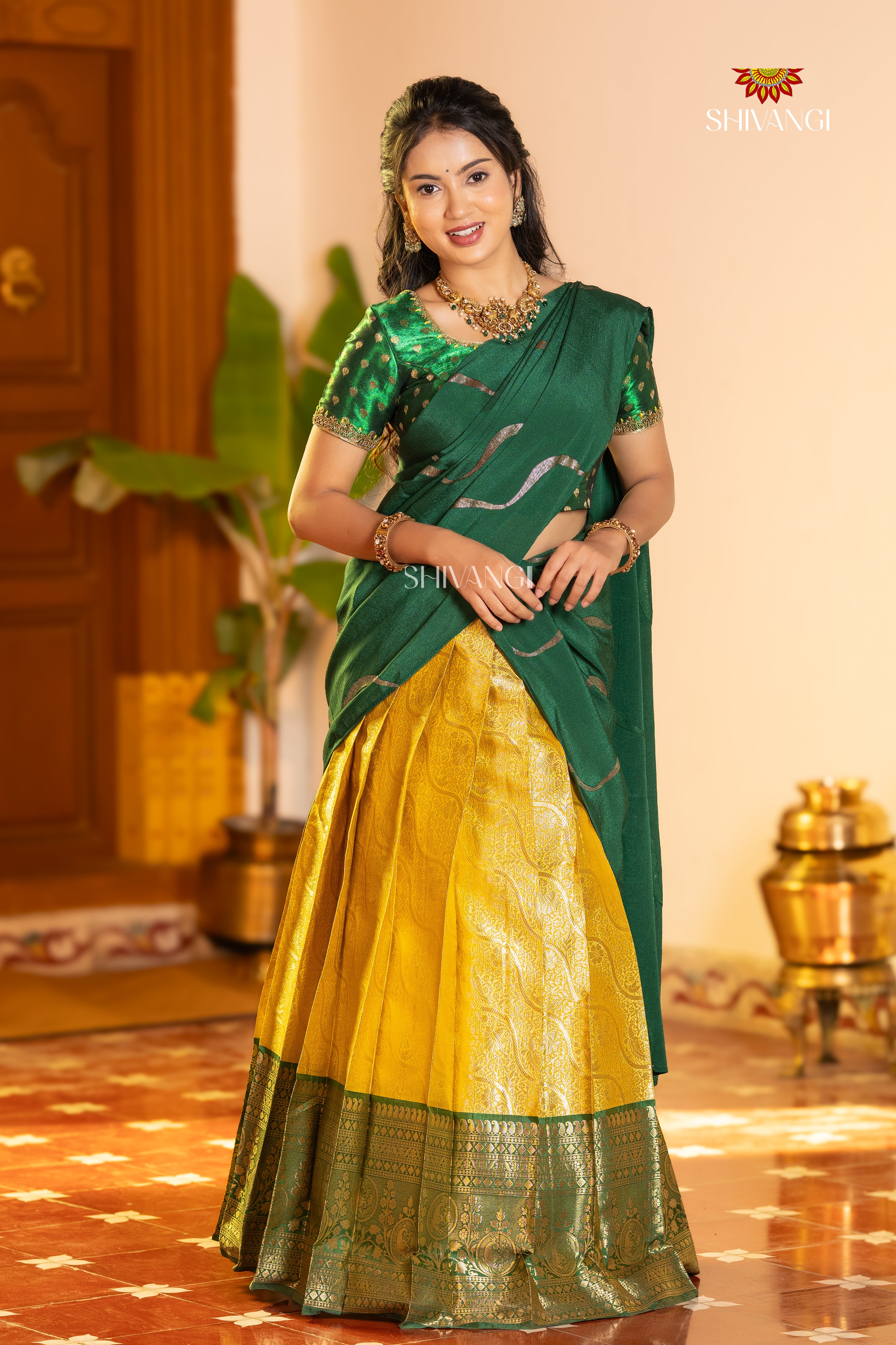 Yellow Golden Annam Emb Half Saree | Lehenga For Girls