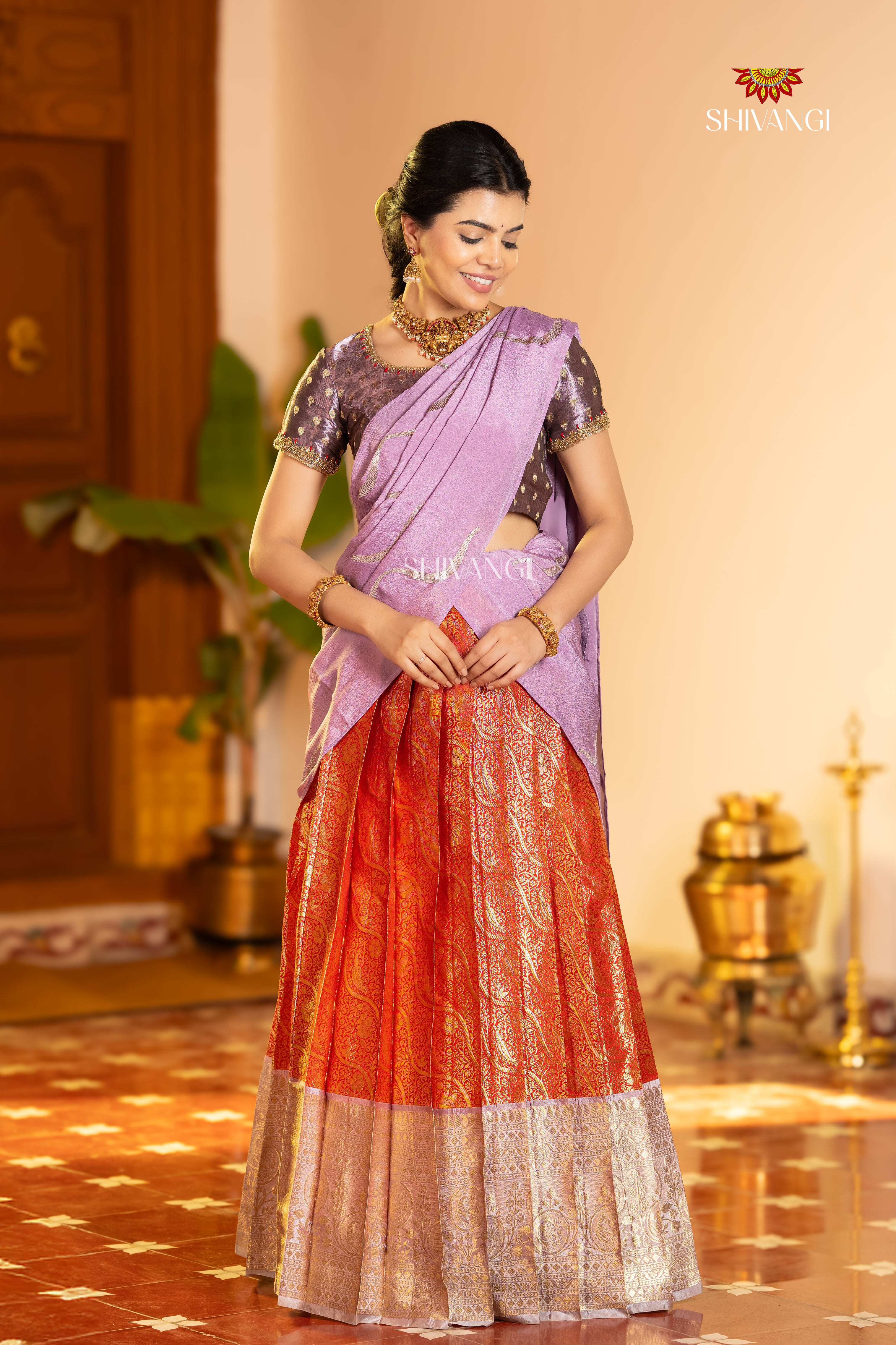 Golden Annam Emb Half Saree | Lehenga For Girls