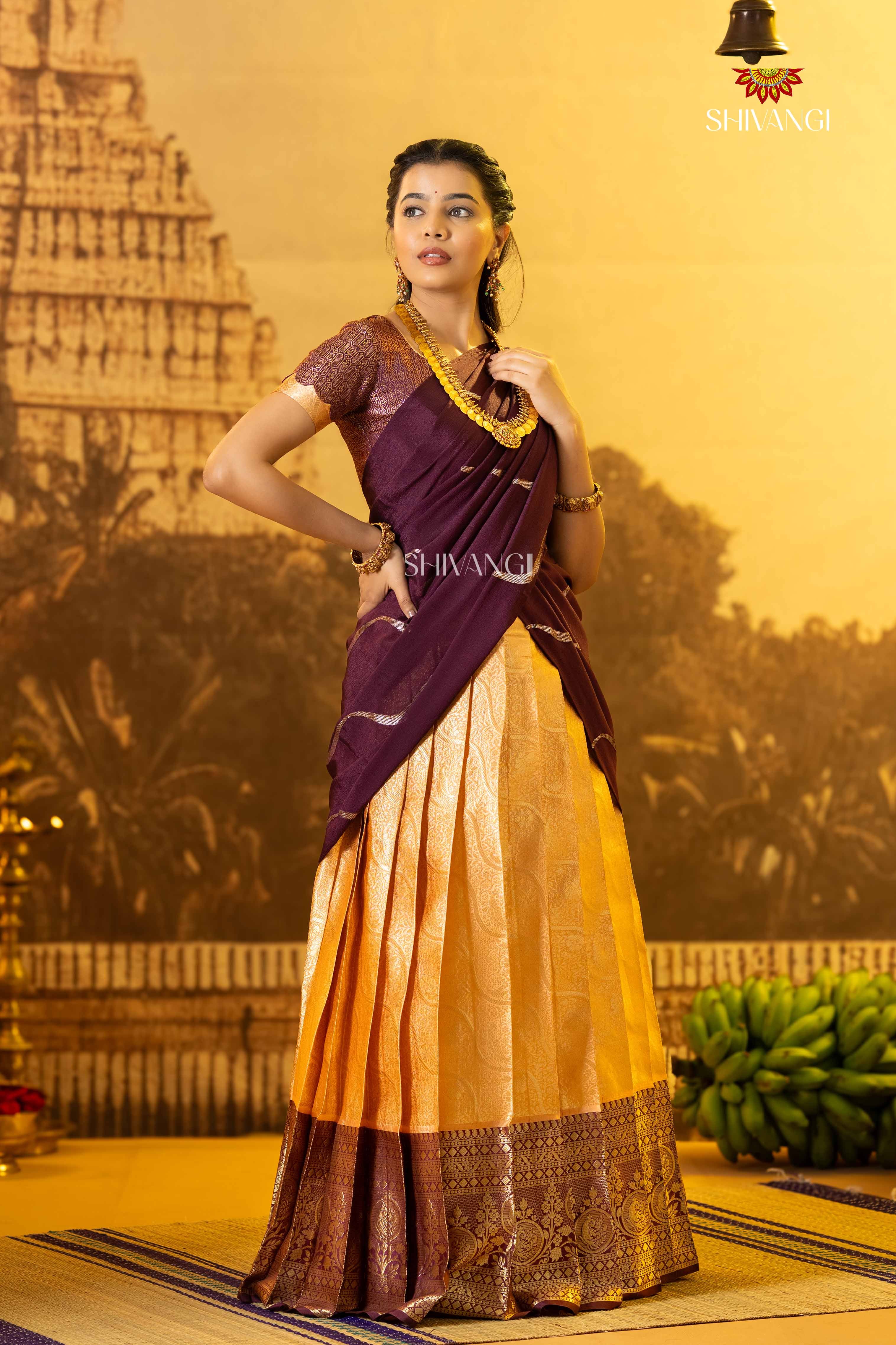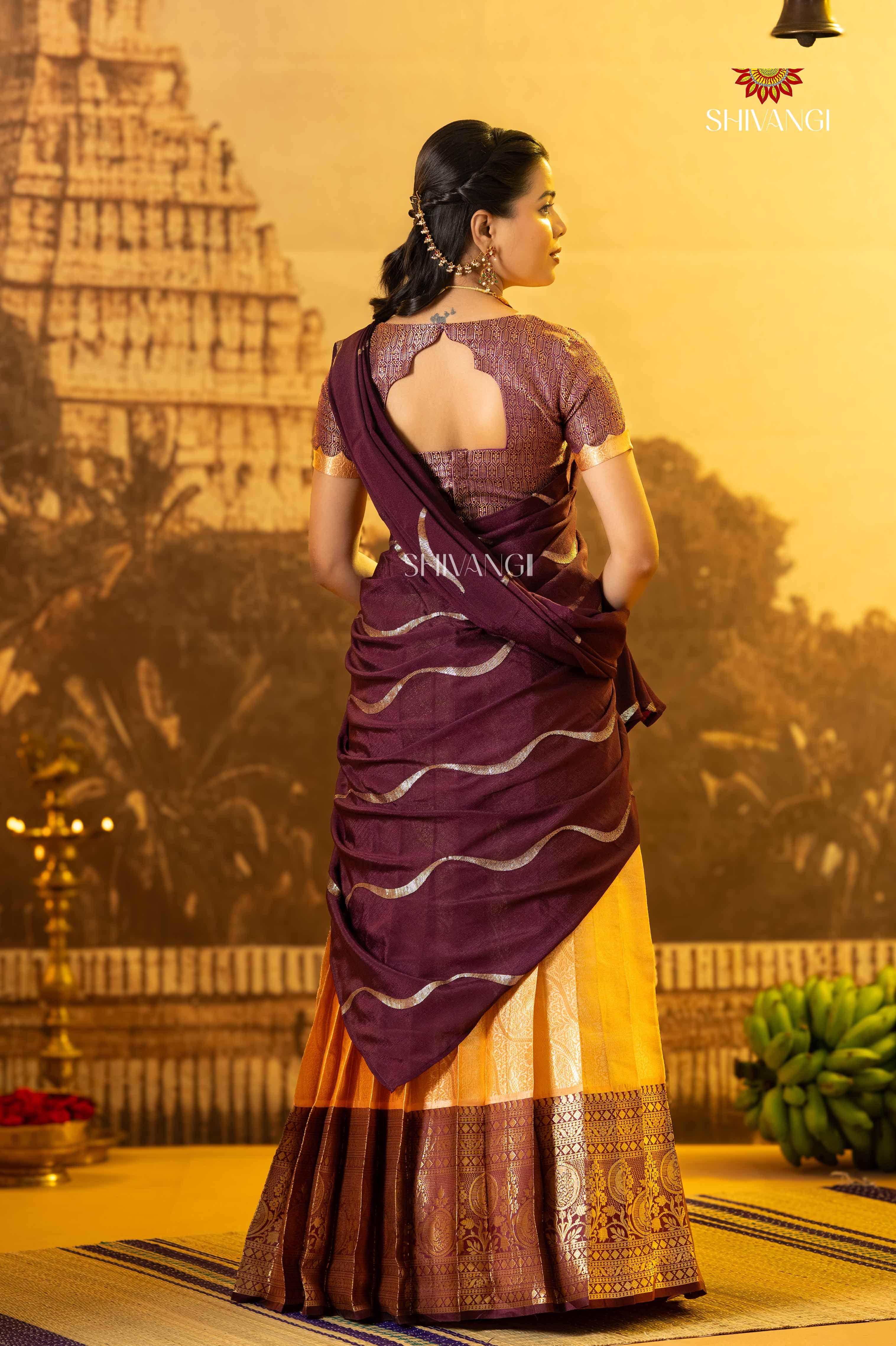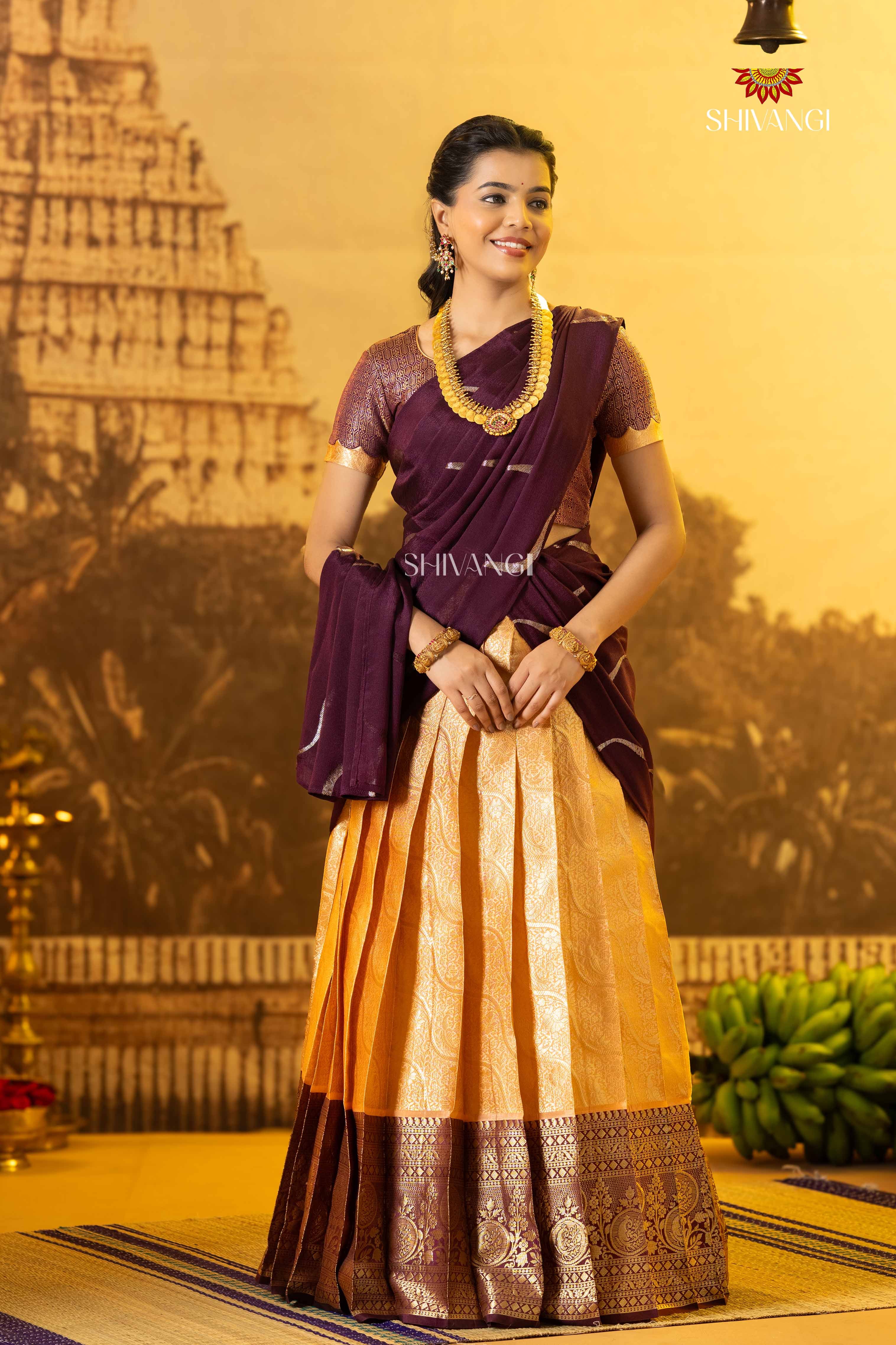 Peach Golden Annam Half Saree | Lehenga For Girls
