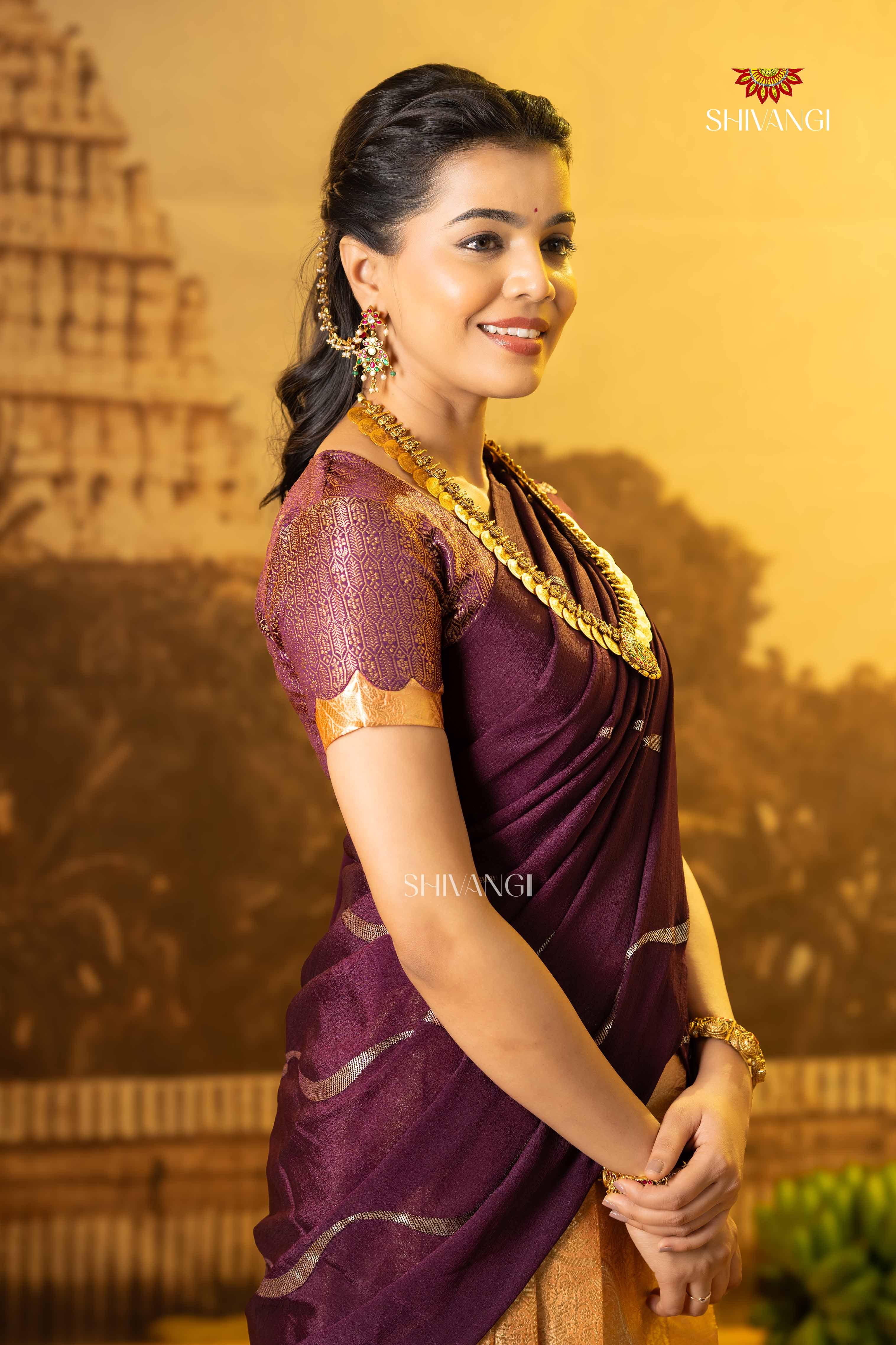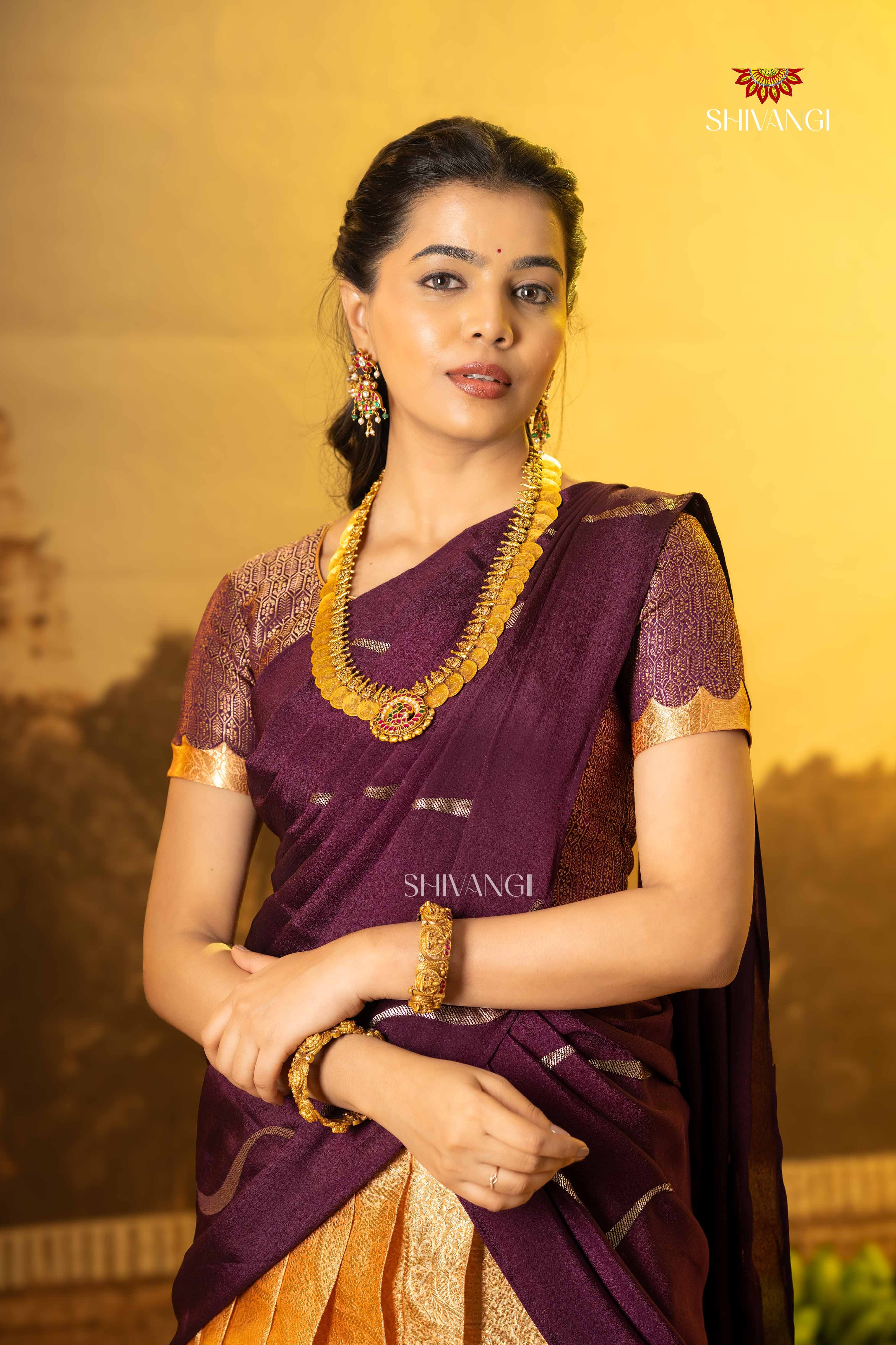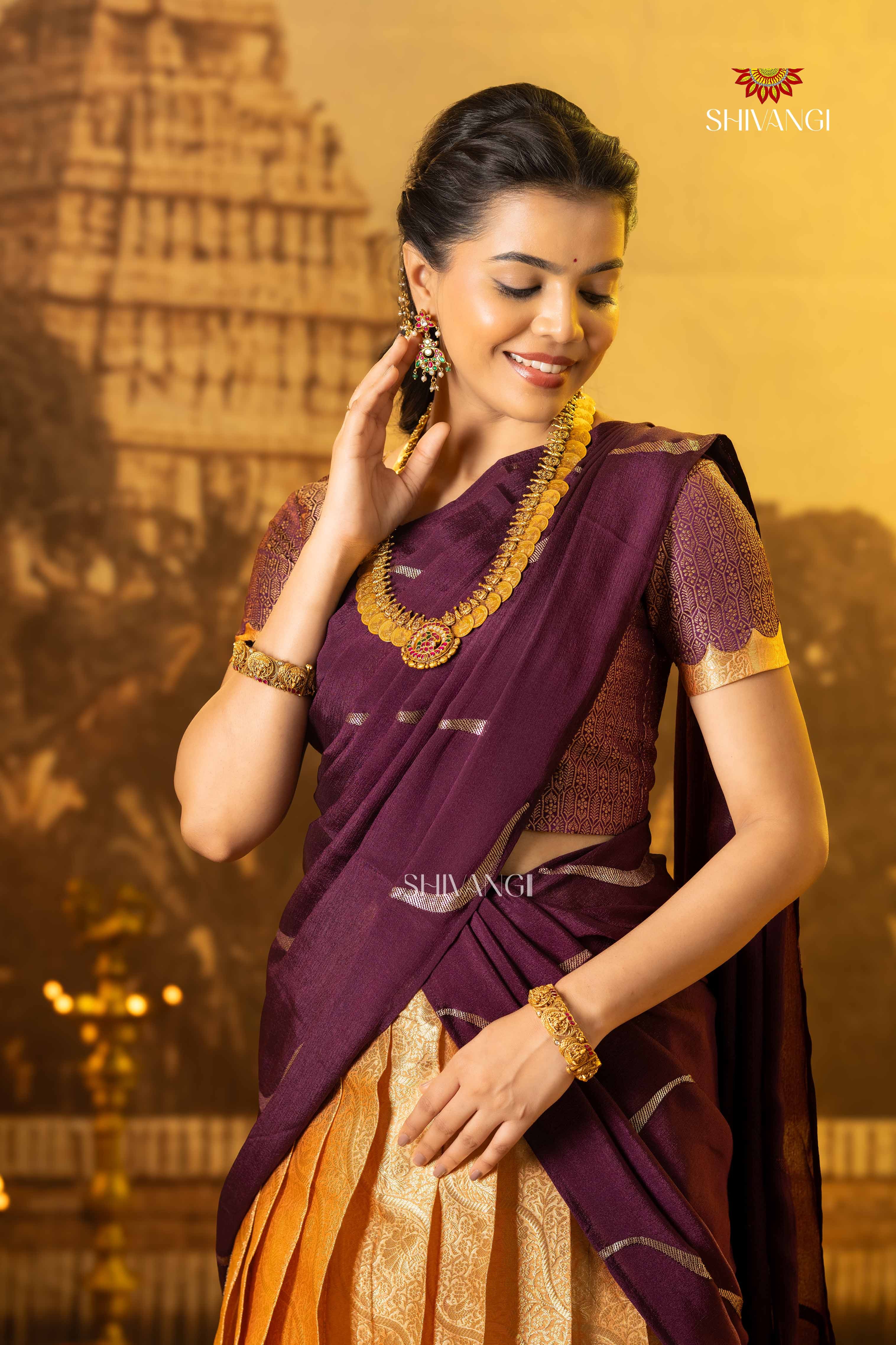 Peach Golden Annam Half Saree | Lehenga For Girls